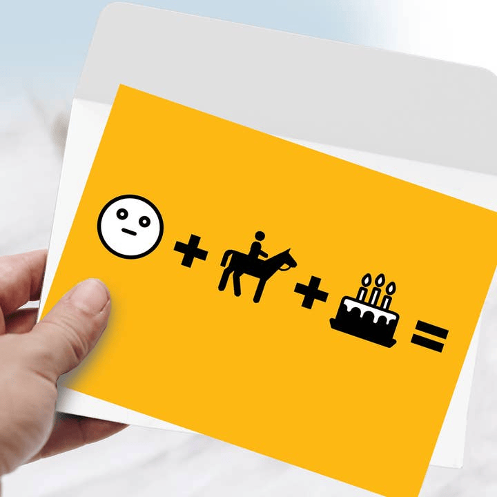 Birthday Card Frown Face + Riding + Bday Cake =