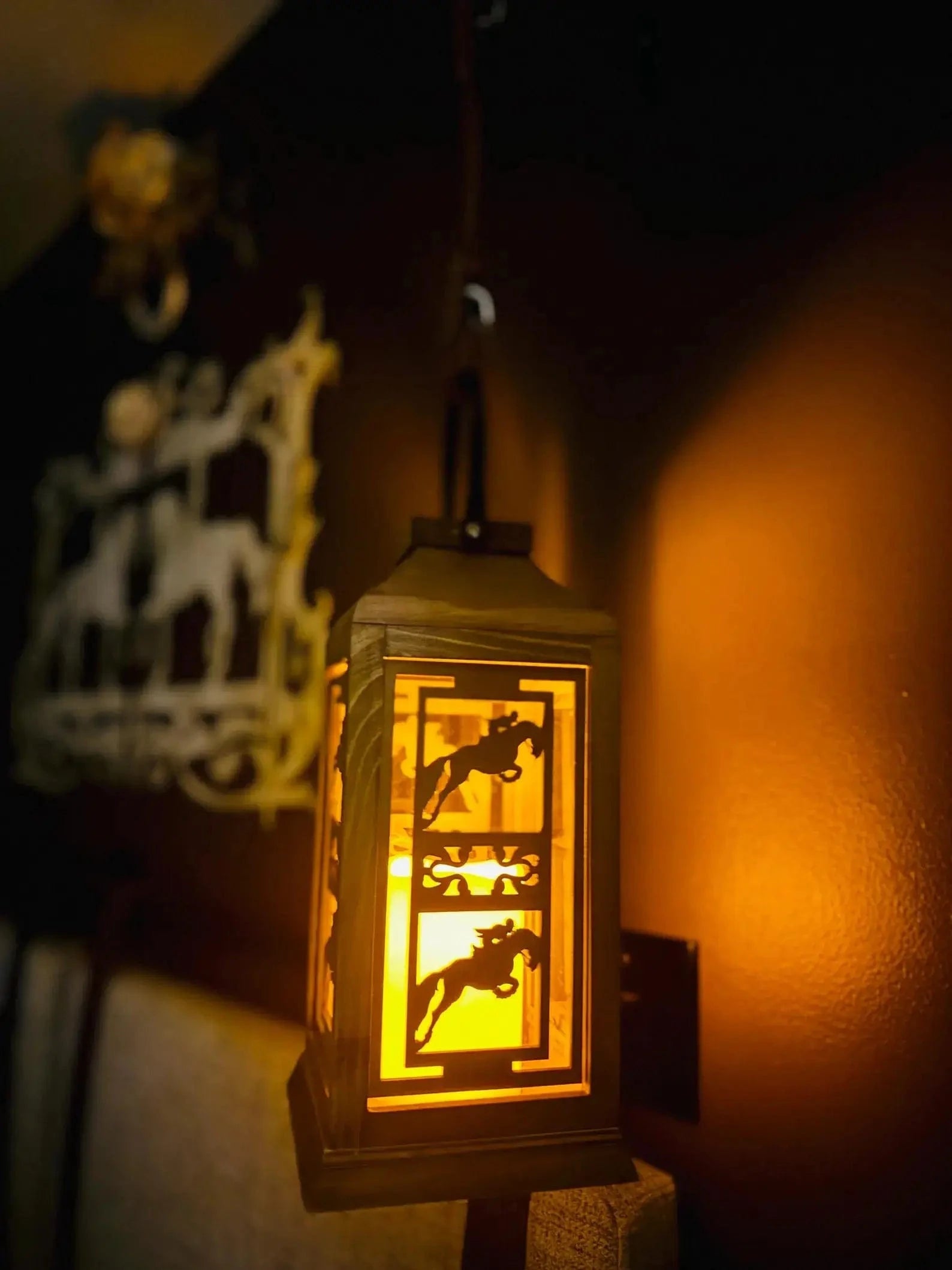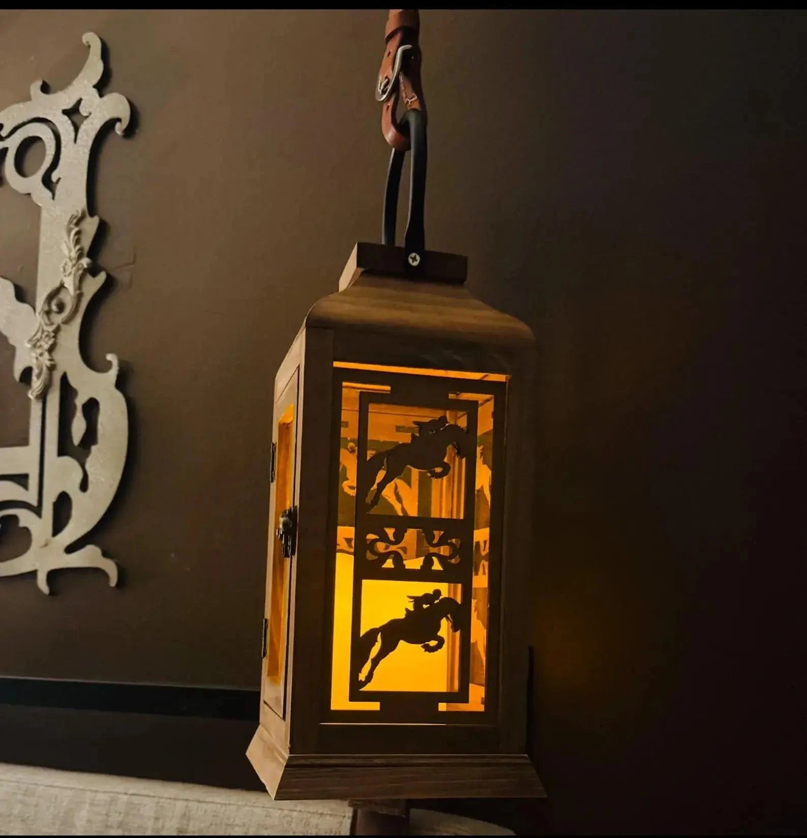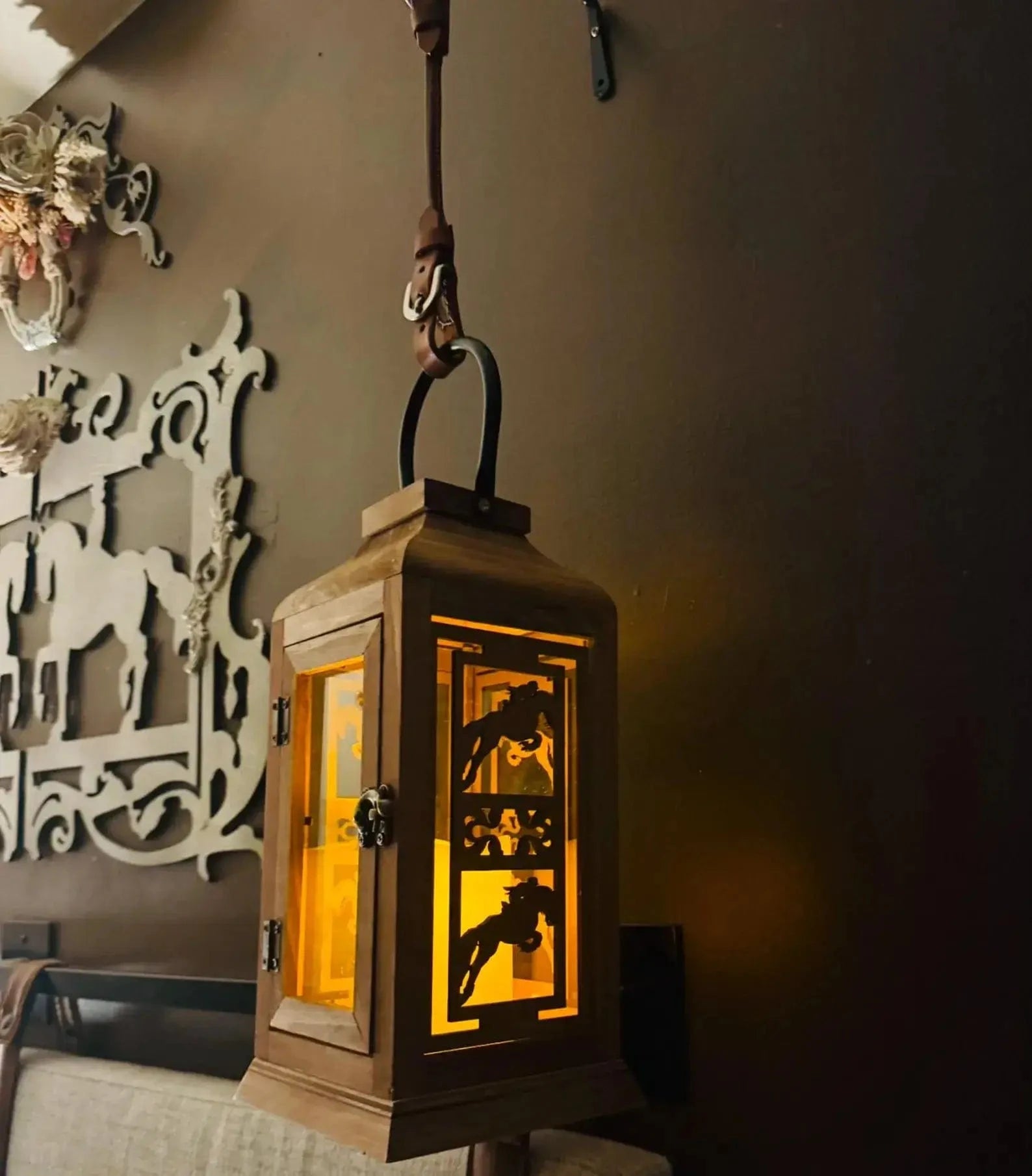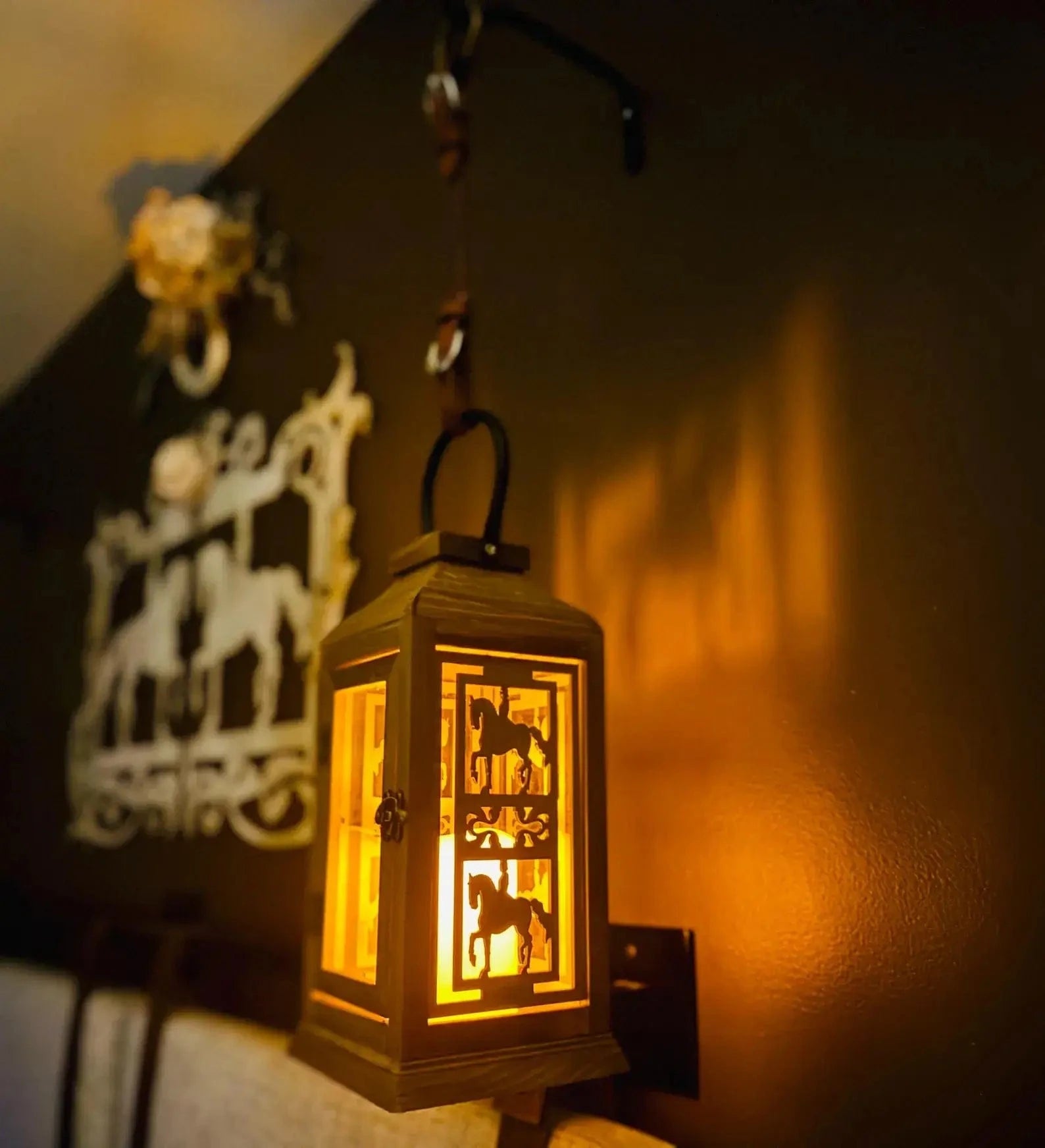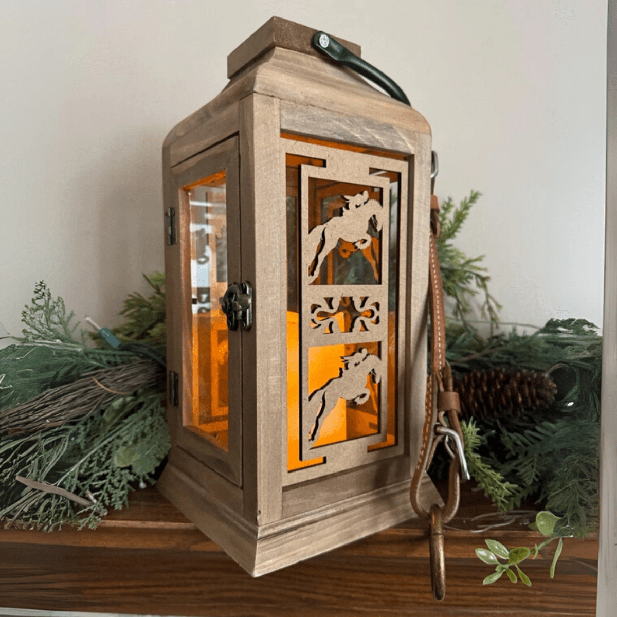 Make a bold equestrian statement, indoors or out, with this 13-inch high wood-designed dressage or jumping horse lantern. This rustic yet beautiful lantern will be a stunning addition to your home or porch.