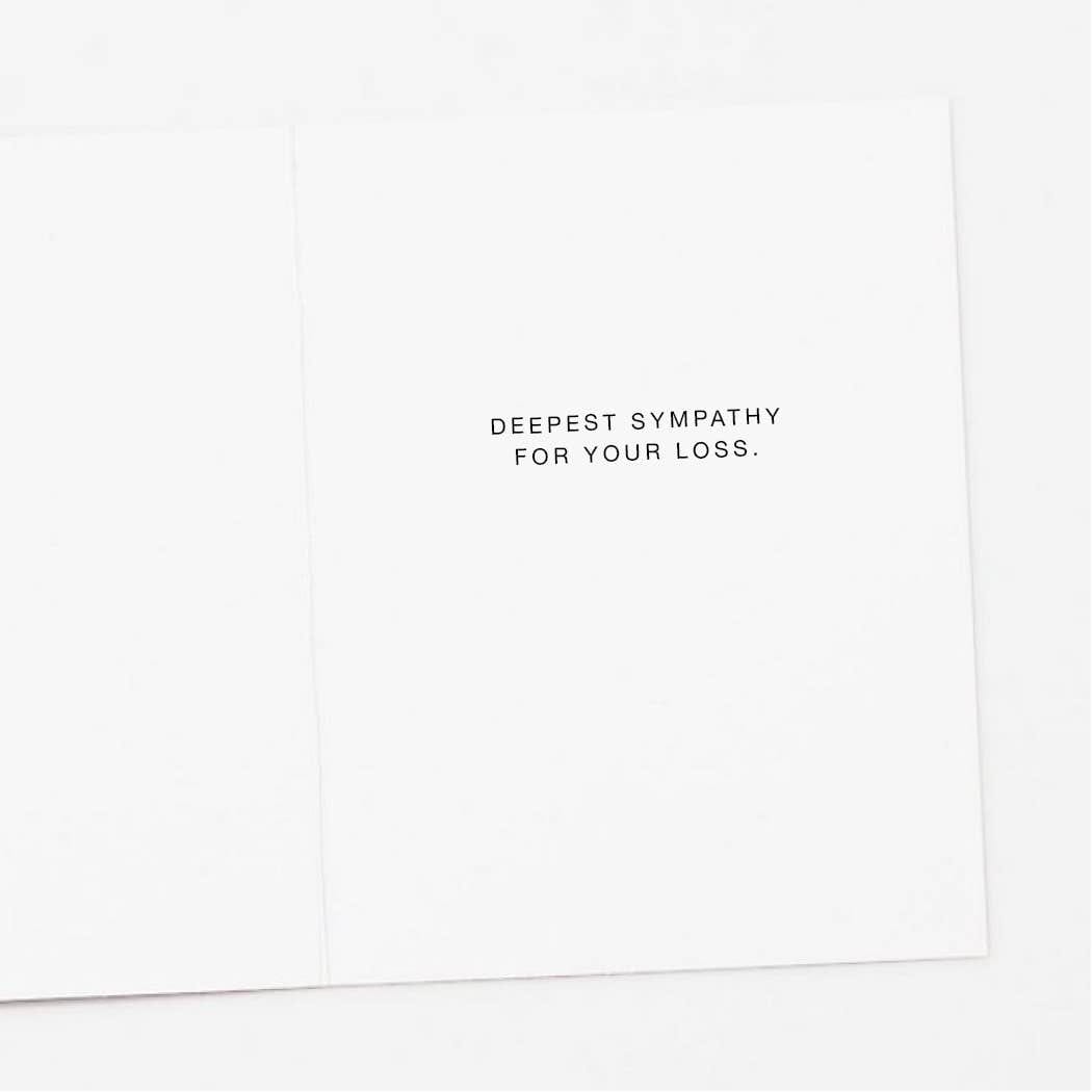 A2 Size Greeting Cards (4.25 x 5.5 inches folded). Inside greeting: “DEEPEST SYMPATHY FOR YOUR LOSS." Printed on premium recycled paper. Paired with recycled white envelopes. Packaged in cellophane.
