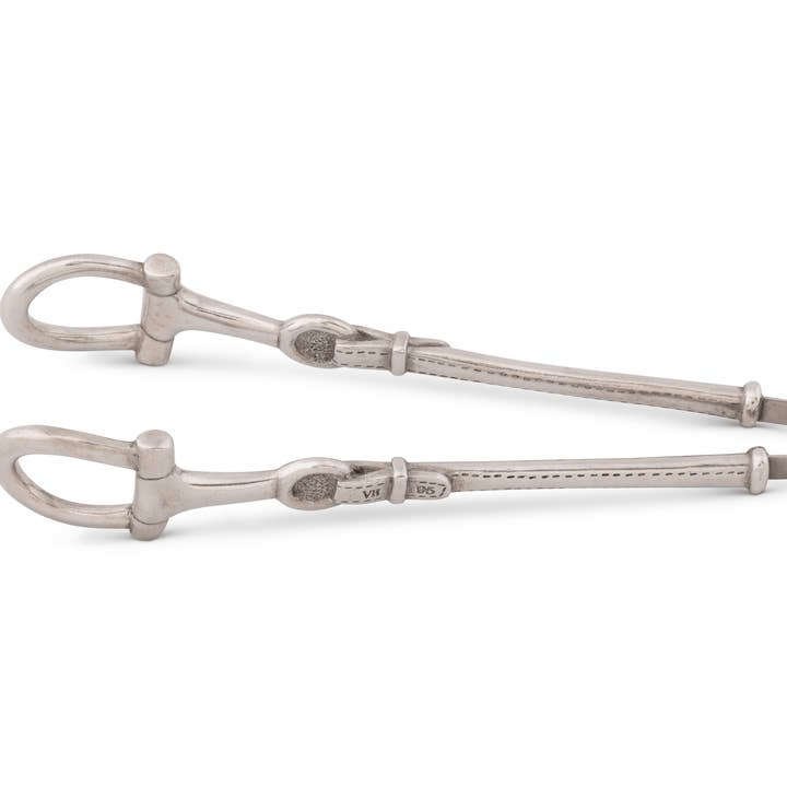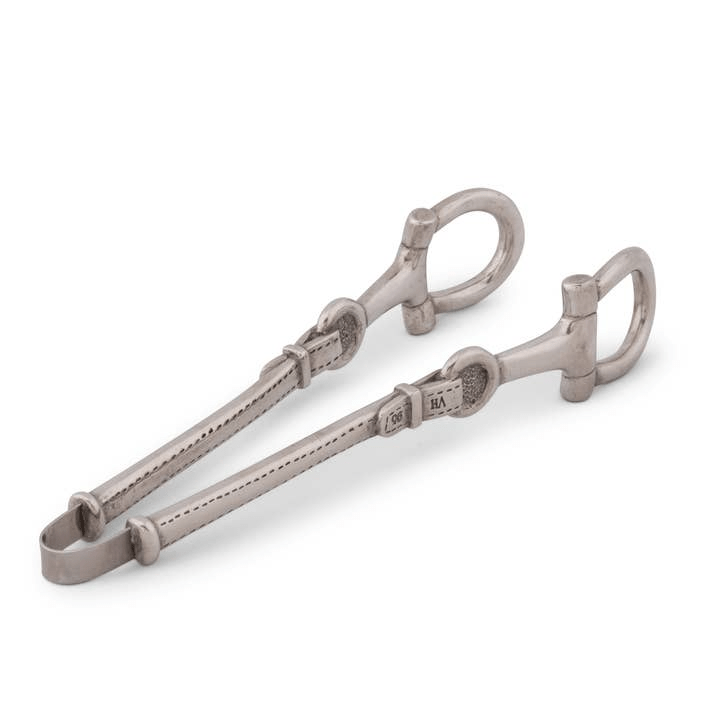 Add a touch of elegance to your bar with the Vagabond House pewter ice tongs. The stirrup motif and buckle details give a vintage Western feel, while the textured sides provide a secure grip on ice. Perfect for any occasion, these tongs are a must-have for any well-stocked bar.