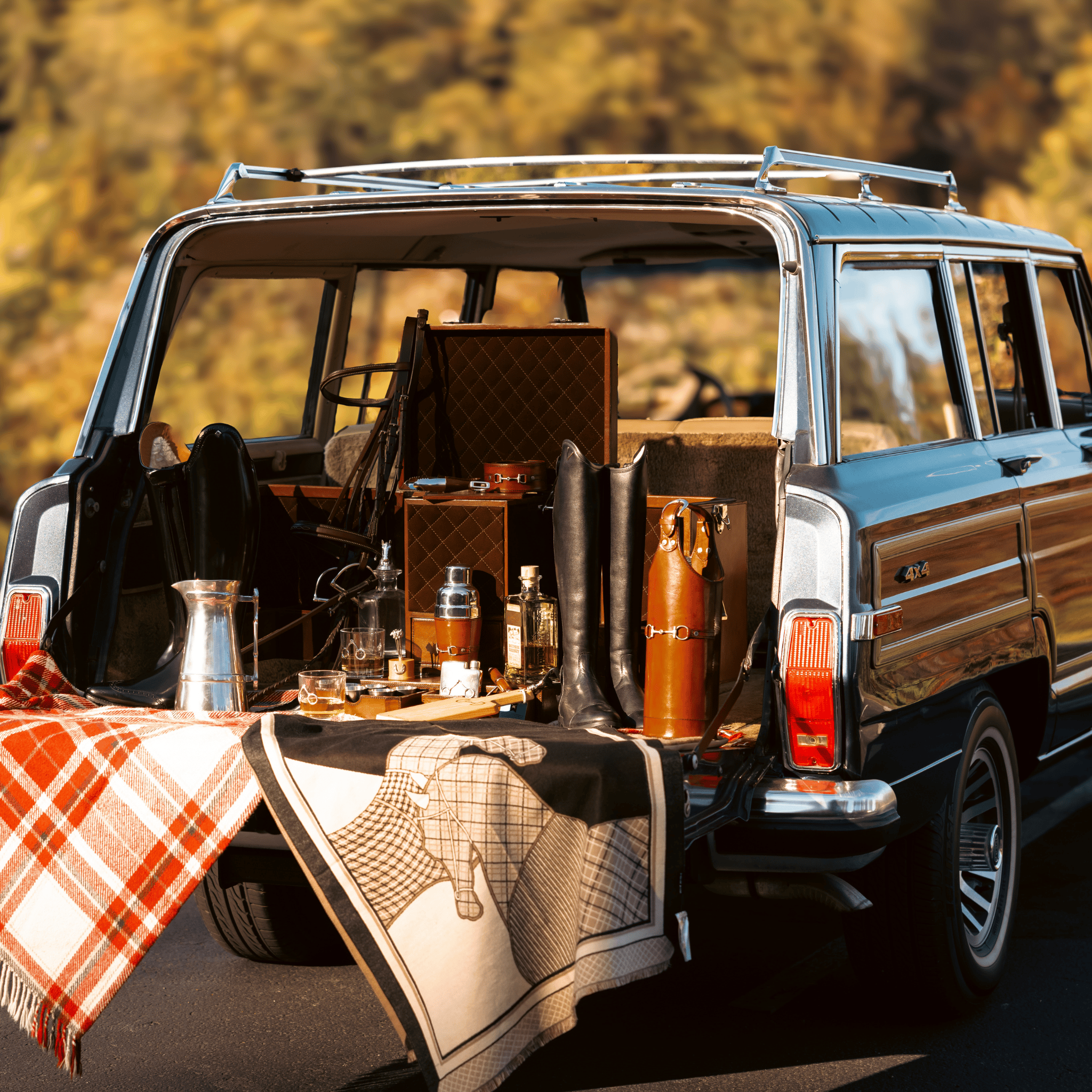 Elevate your entertaining experience with the luxurious and functional Equestrian-Themed Leather Bar Case, designed for those who appreciate sophisticated service. Crafted from premium leather, the case opens to reveal a complete collection of bar essentials, including a stainless-lined ice bucket and six metal shot glasses.