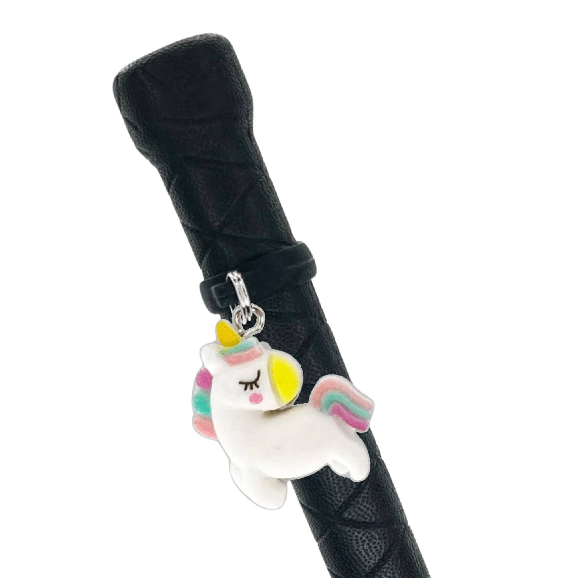 Add personality to your equestrian gear with the Crop & Bridle Charm. Its stretch silicone band fits most crop handles securely, while the split ring ensures it won’t fall off. Easy to clip on braids, bridles, boots, and more, these charms come in various designs to match your style or make a great gift.