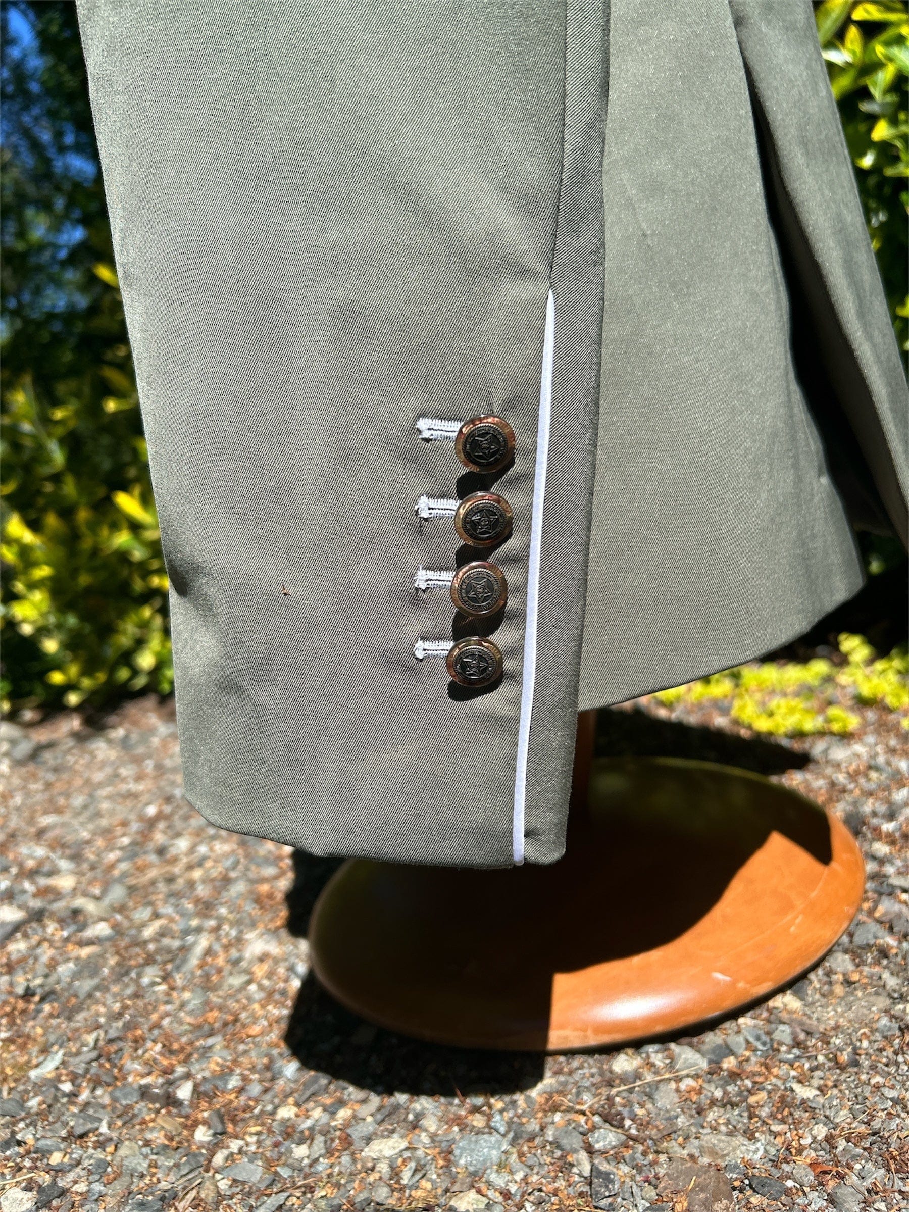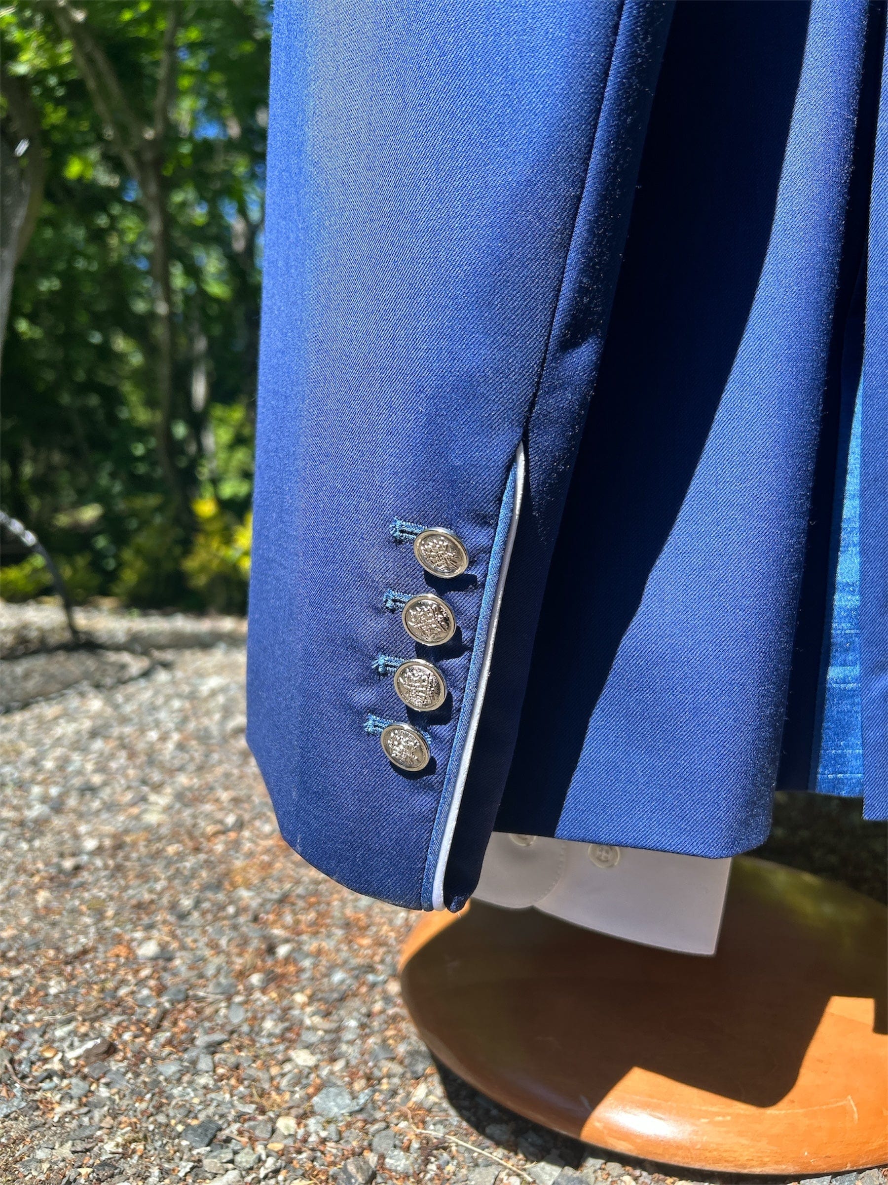 Choose fabrics, colors, details and buttons as you go. Any simple adjustments to fit can also be made, but we will make sure we have everything we need before your order is placed. These custom coats take 12-14 weeks.