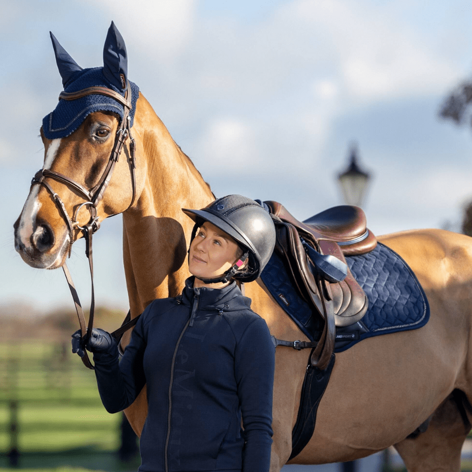 Experience top-of-the-line performance with the LeMieux crystal suede close contact pad. Specifically crafted for forward-cut jumping saddles, this pad has a bamboo lining, faux leather girth protection area, and elegant sparkle and braided detail trims. Enhance your ride with style and functionality.