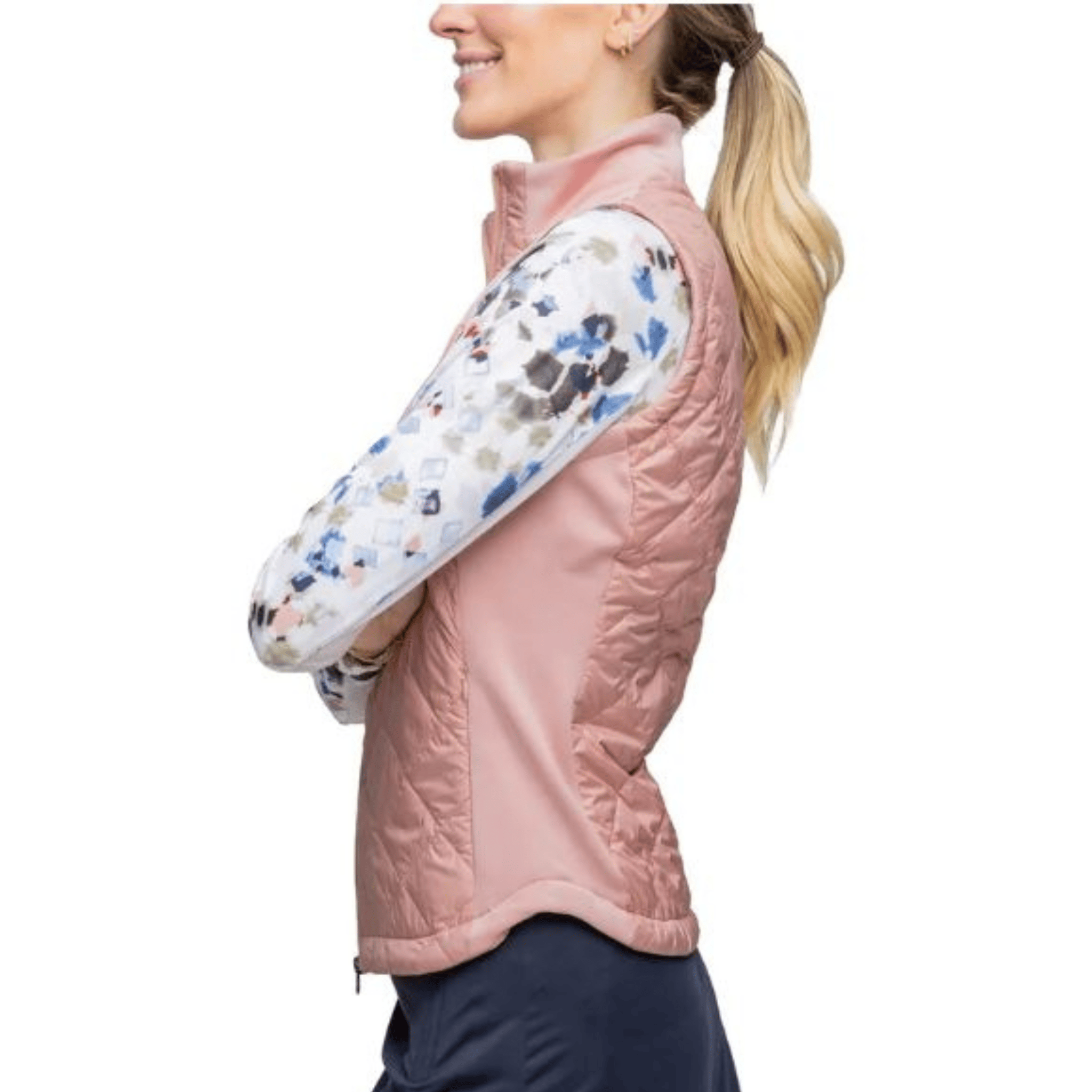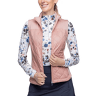The quilted vest, presented this season in a beautiful Blush color, is perfect for chilly activities like an early training ride or feed time. The front and back panels are quilted for wind resistance, while the side panels use a cozy, sleek performance knit to maximize range of motion and comfort.