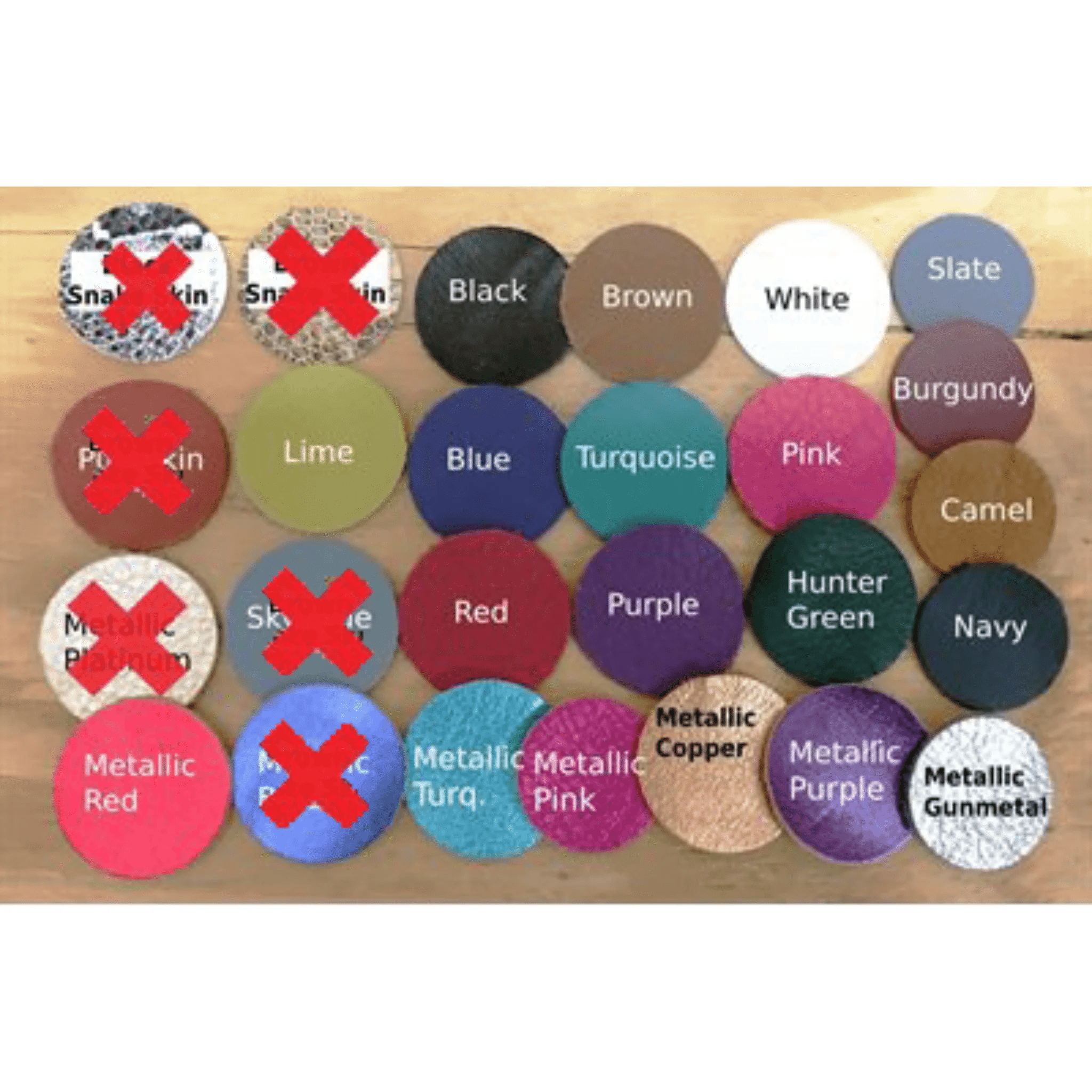 Handmade in the US from high quality leather with soft padding. Havana (brown) leather comes with brass hardware and nameplate, black leather comes with chrome hardware and nameplate.