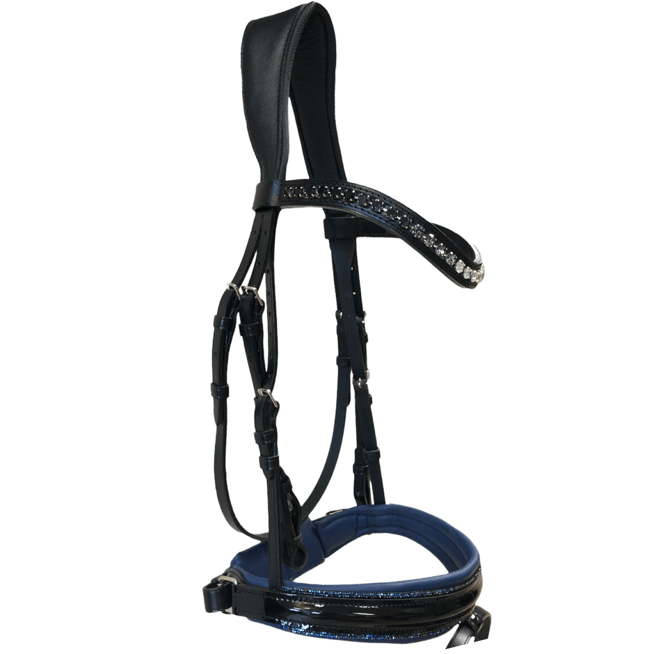 Otto Schumacher Tokyo Snaffle Bridle with Black Patent and Blue Fineline