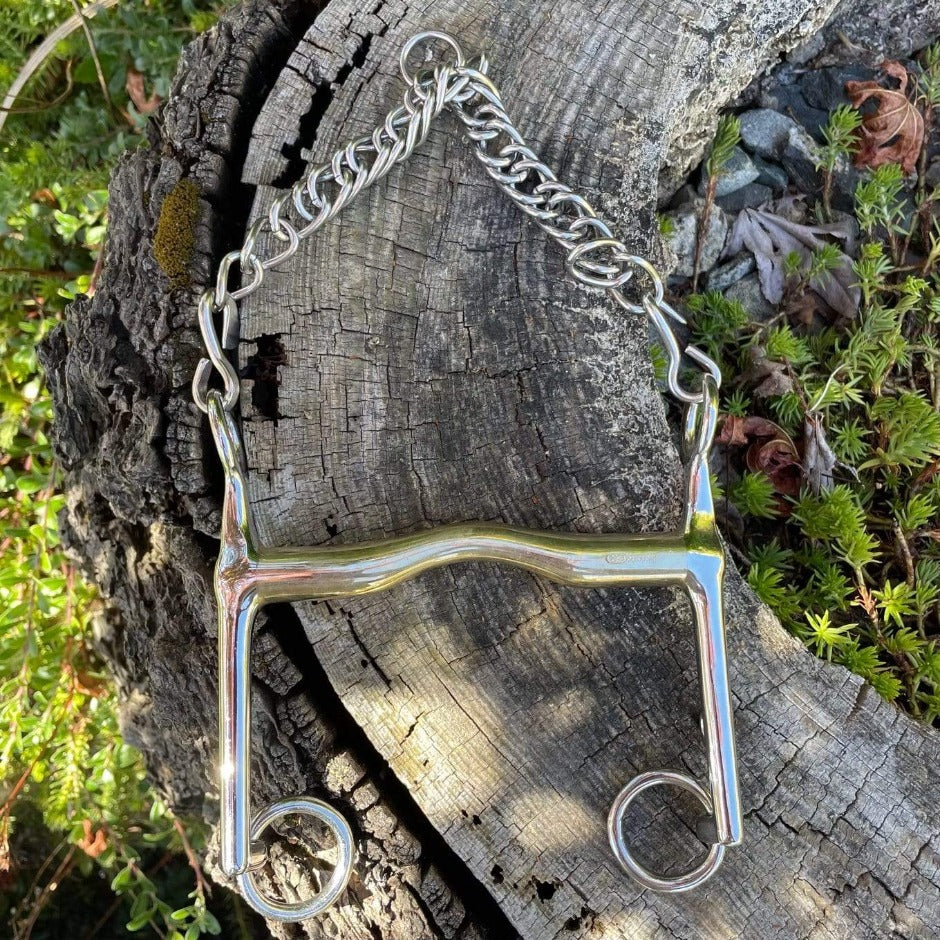 This weymouth from Herm Sprenger has a slight port and a 16mm thickness. This design offers gentle tongue relief without squeezing the palate.