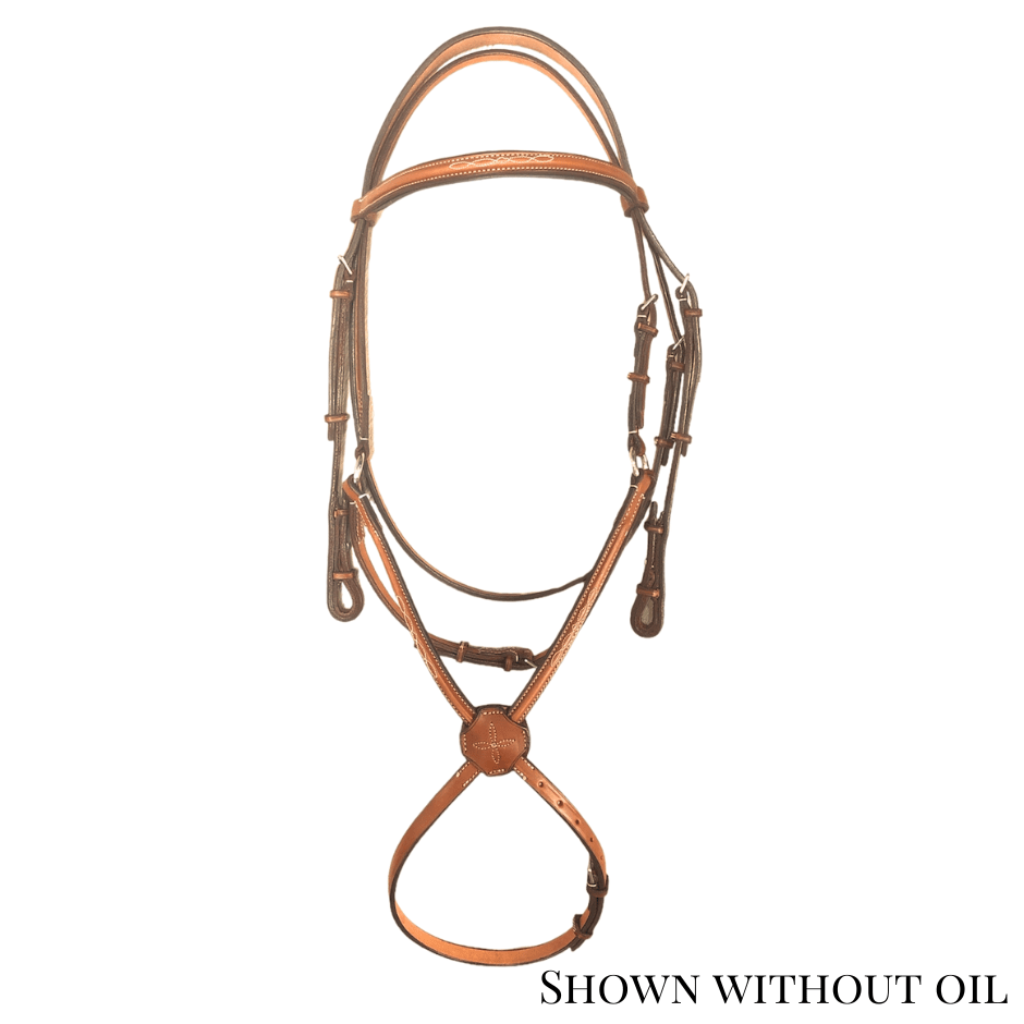 This model features padded fancy stitched noseband & browband. Standard non padded traditional crown.
