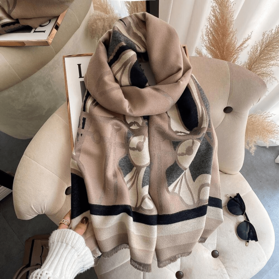 Equestrian Cashmere Scarf/ Shawl - Black & Grey