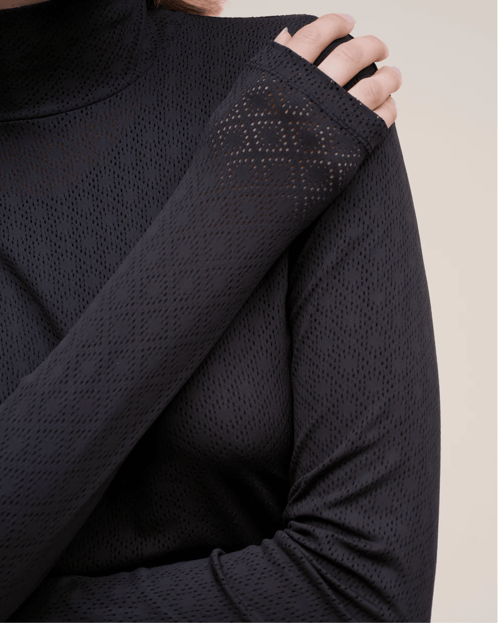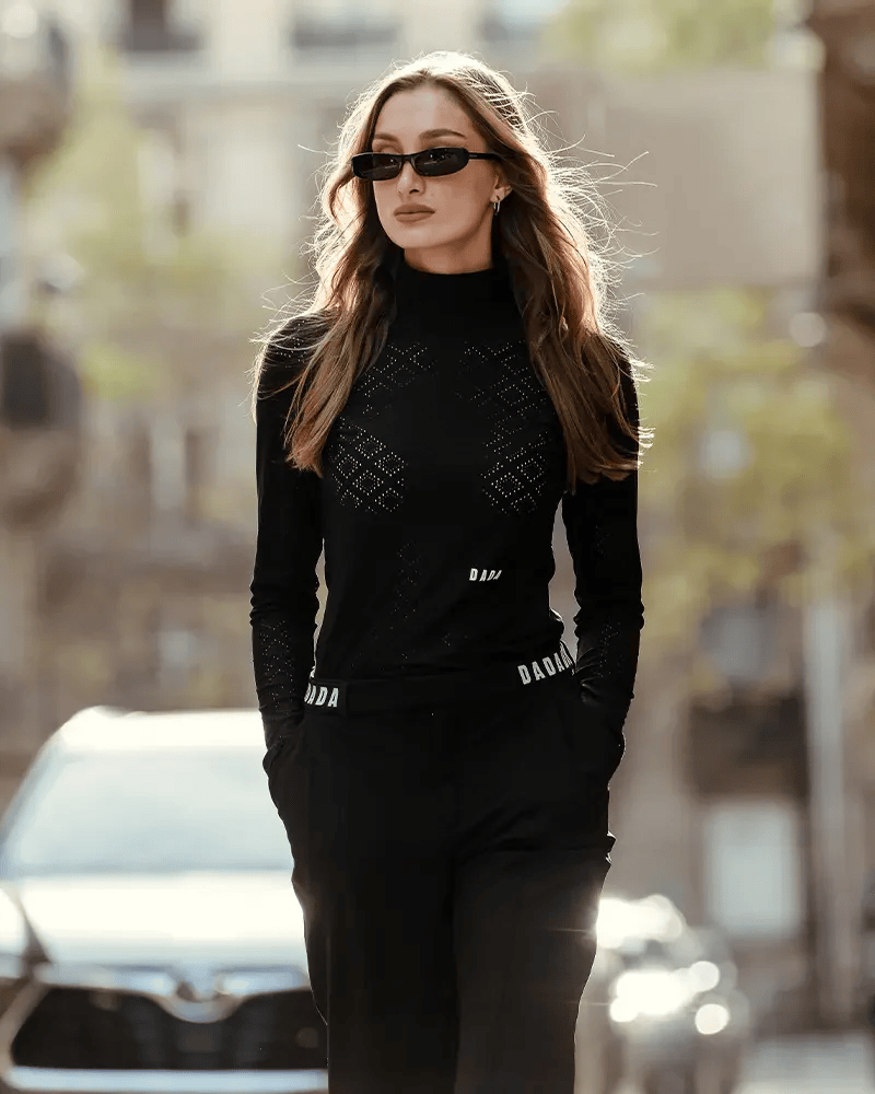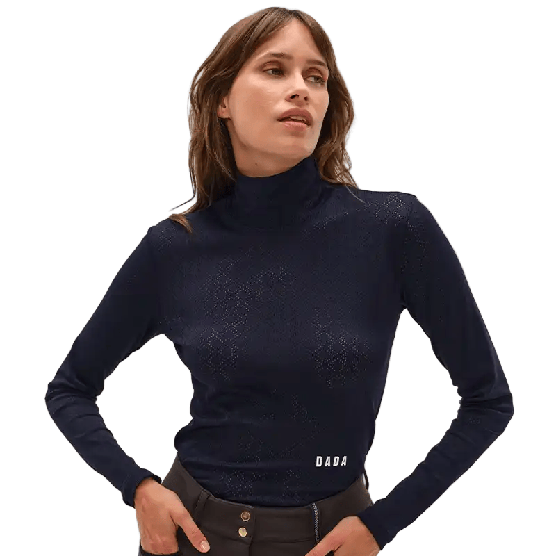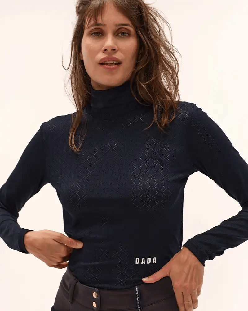 This long-sleeved T-shirt, designed with Dada Sport's expertise, features a unique jacquard fabric with a "small tiles" pattern created using a specialized stretch fiber knitting technique. The top offers a soft, breathable, and lightweight feel, a fitted cut to enhance the silhouette, and a chimney collar. Made from UV-protected Italian fabric, it ensures performance and style in the saddle