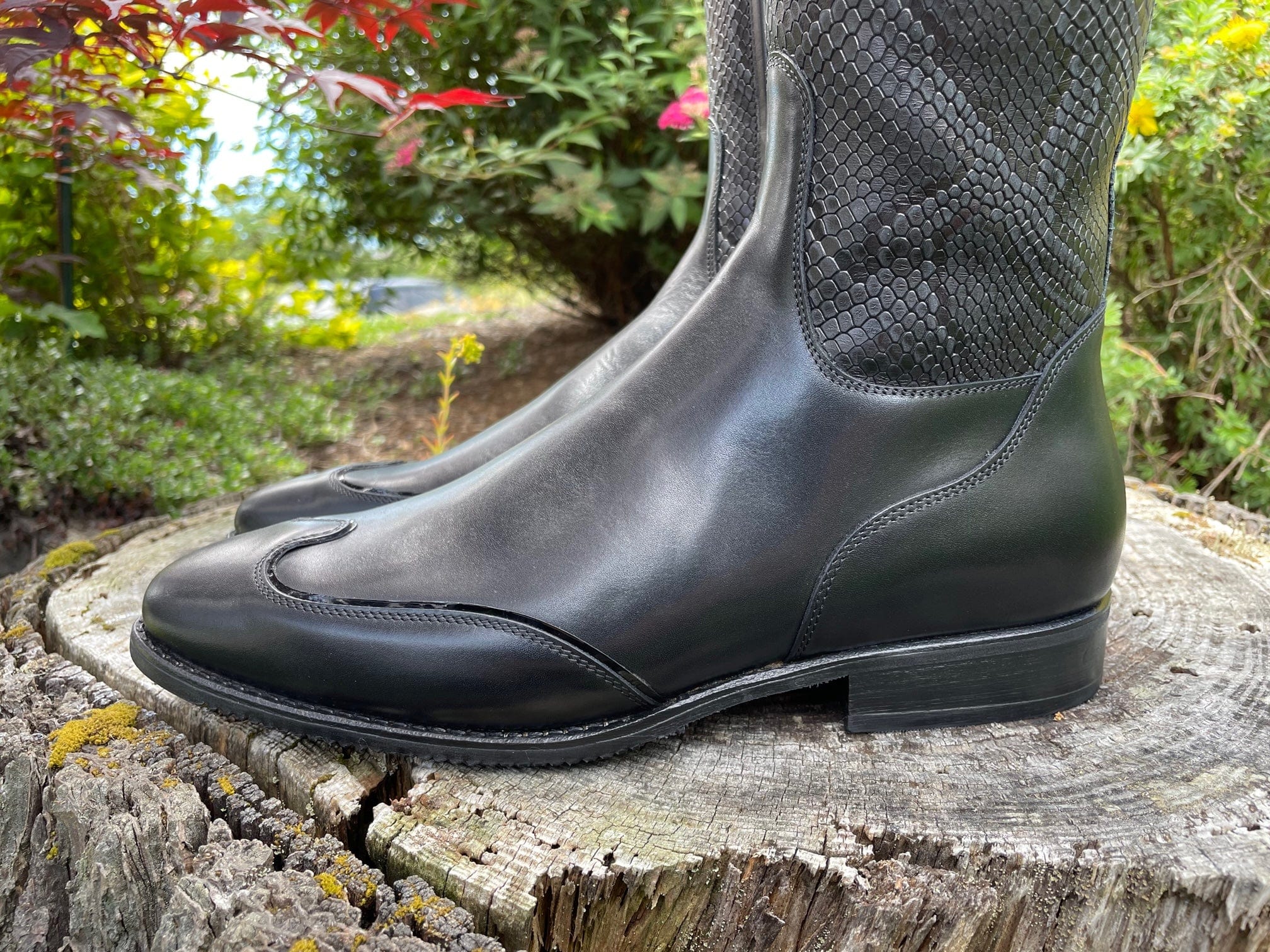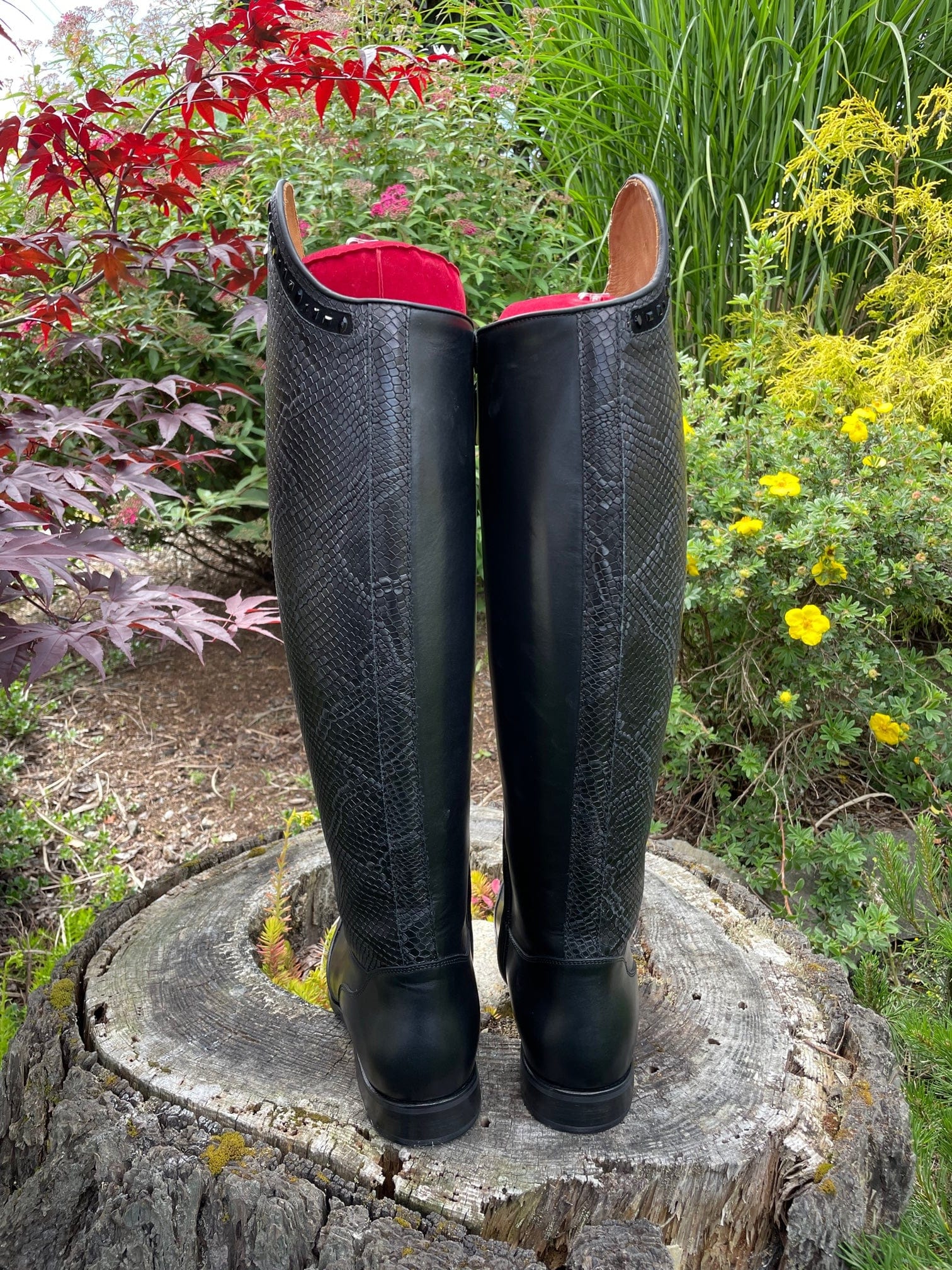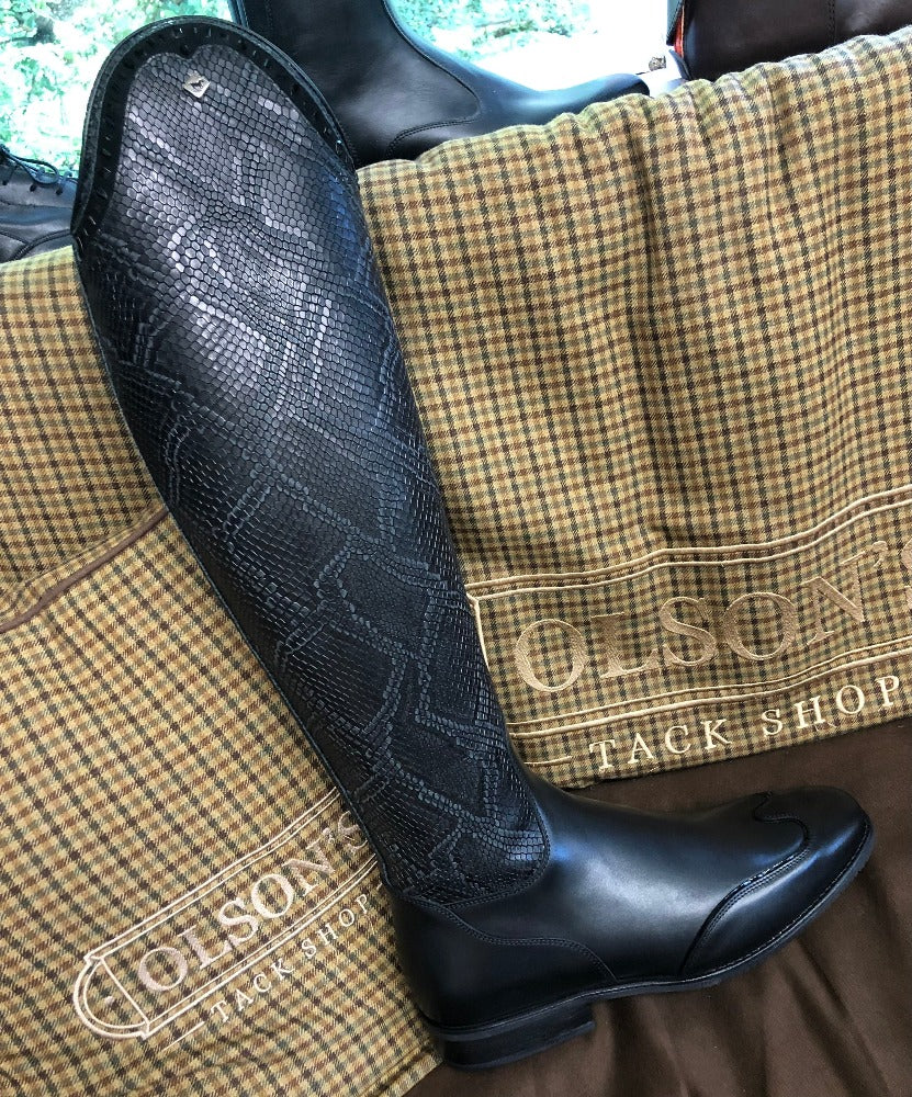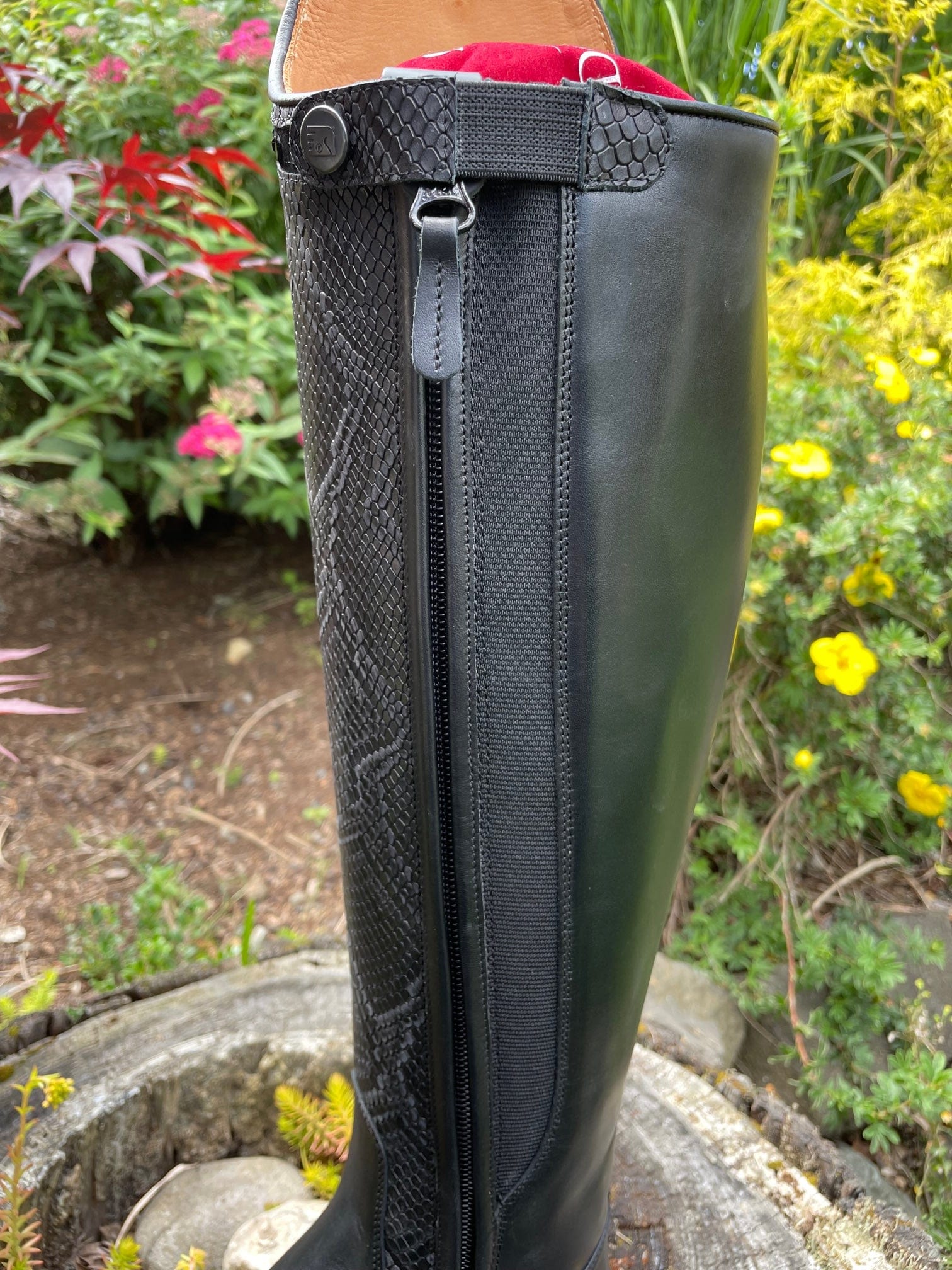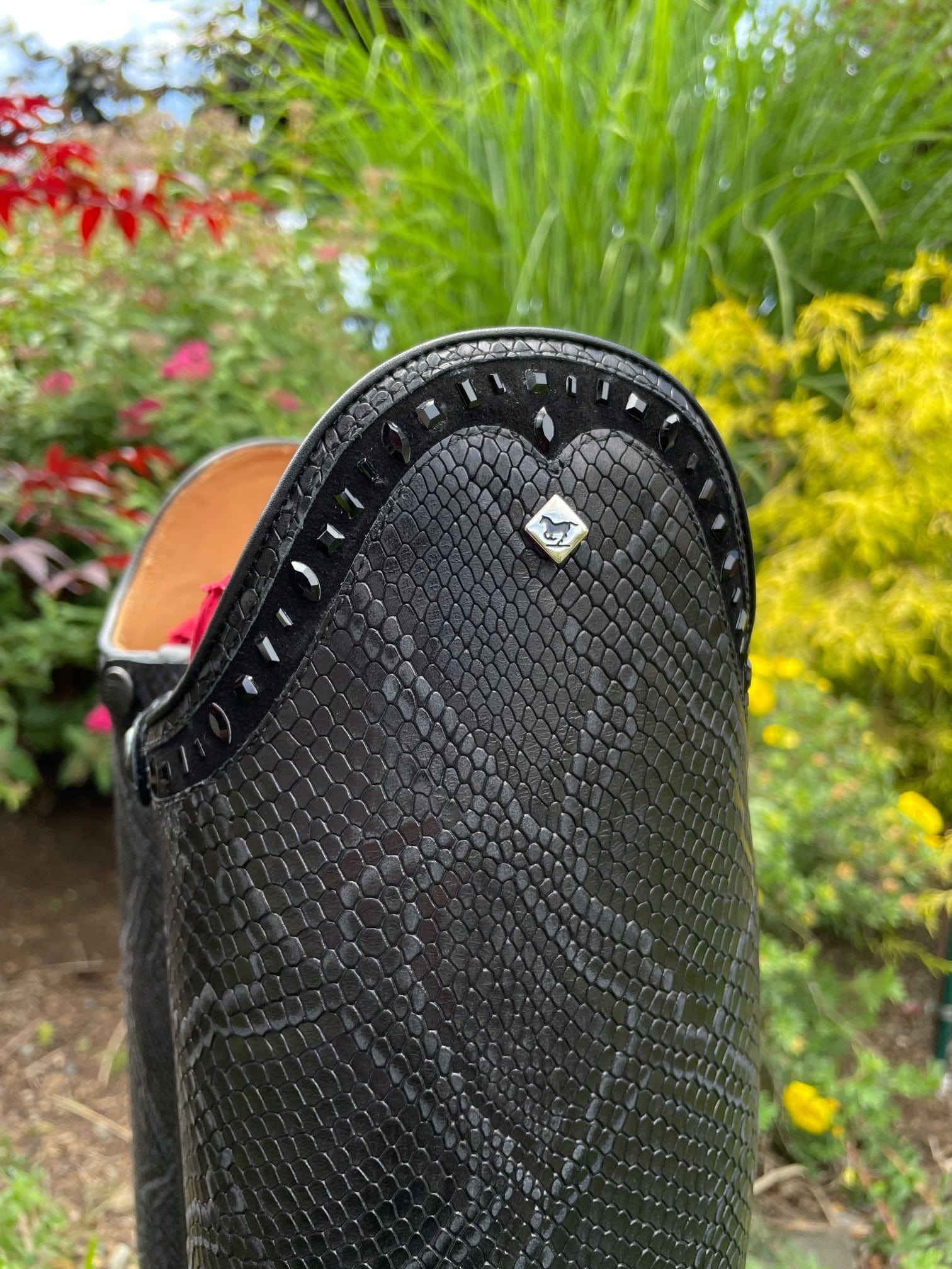 Beautiful Custom Bellini DeNiro Dressage Boot featuring the black regal p.ython detail.
