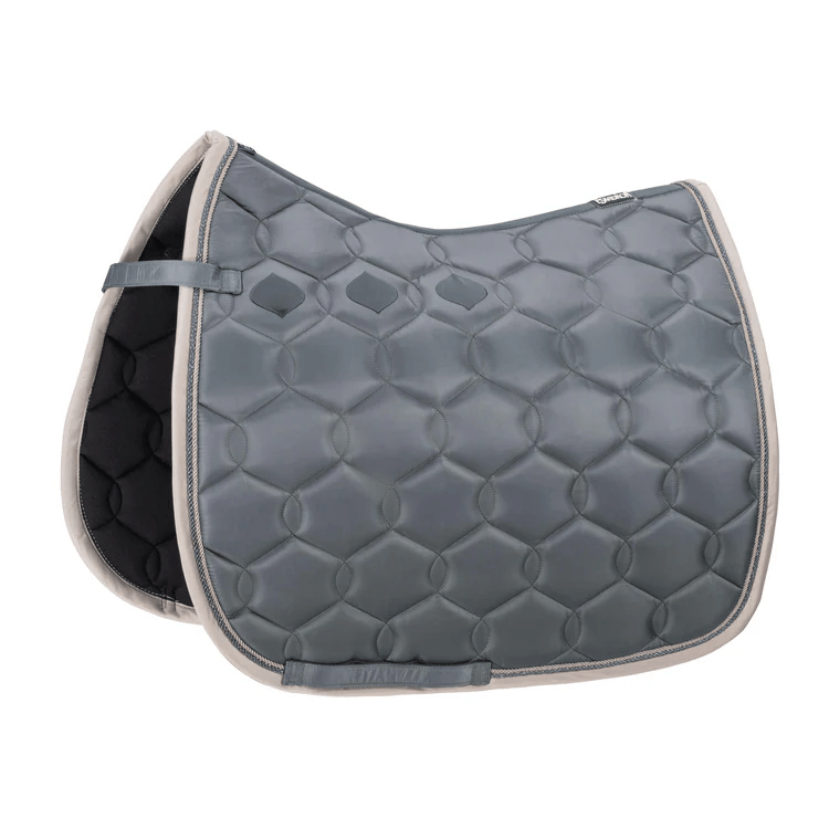 The Glossy Wave Saddle Pad is a beautiful and highly functional pad designed for top performance and style. It features a resistant glossy outer fabric with voluminous quilting for cushioning, complemented by a breathable, cool-dry inside lining.
