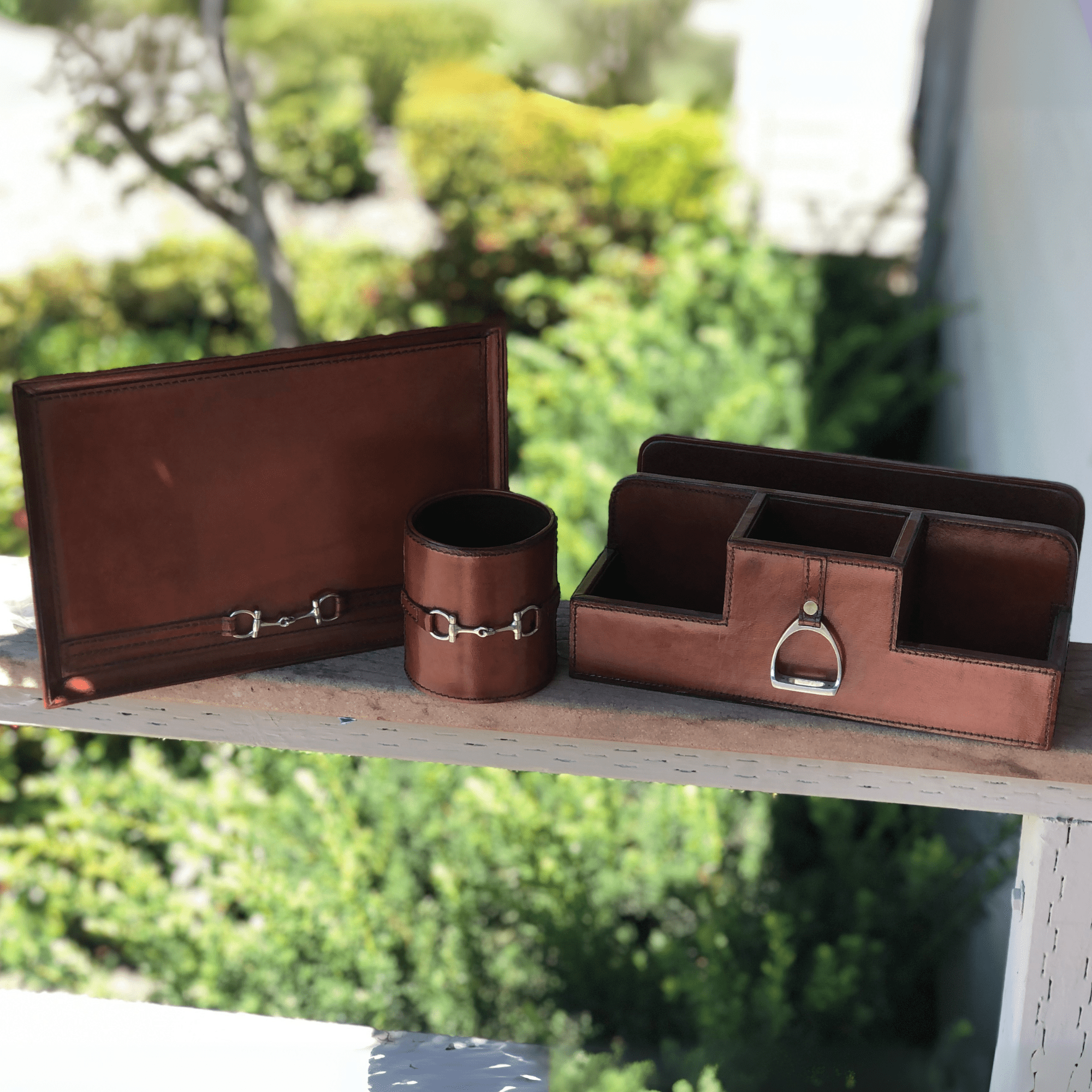 This bundle is for the rider who brings their passion for horses into every aspect of their life, even the office. It's for the person who appreciates fine craftsmanship and wants to add a touch of equestrian elegance to their workspace. This set of beautifully crafted leather desk accessories is the perfect way to stay organized while showcasing their love for the equestrian world.