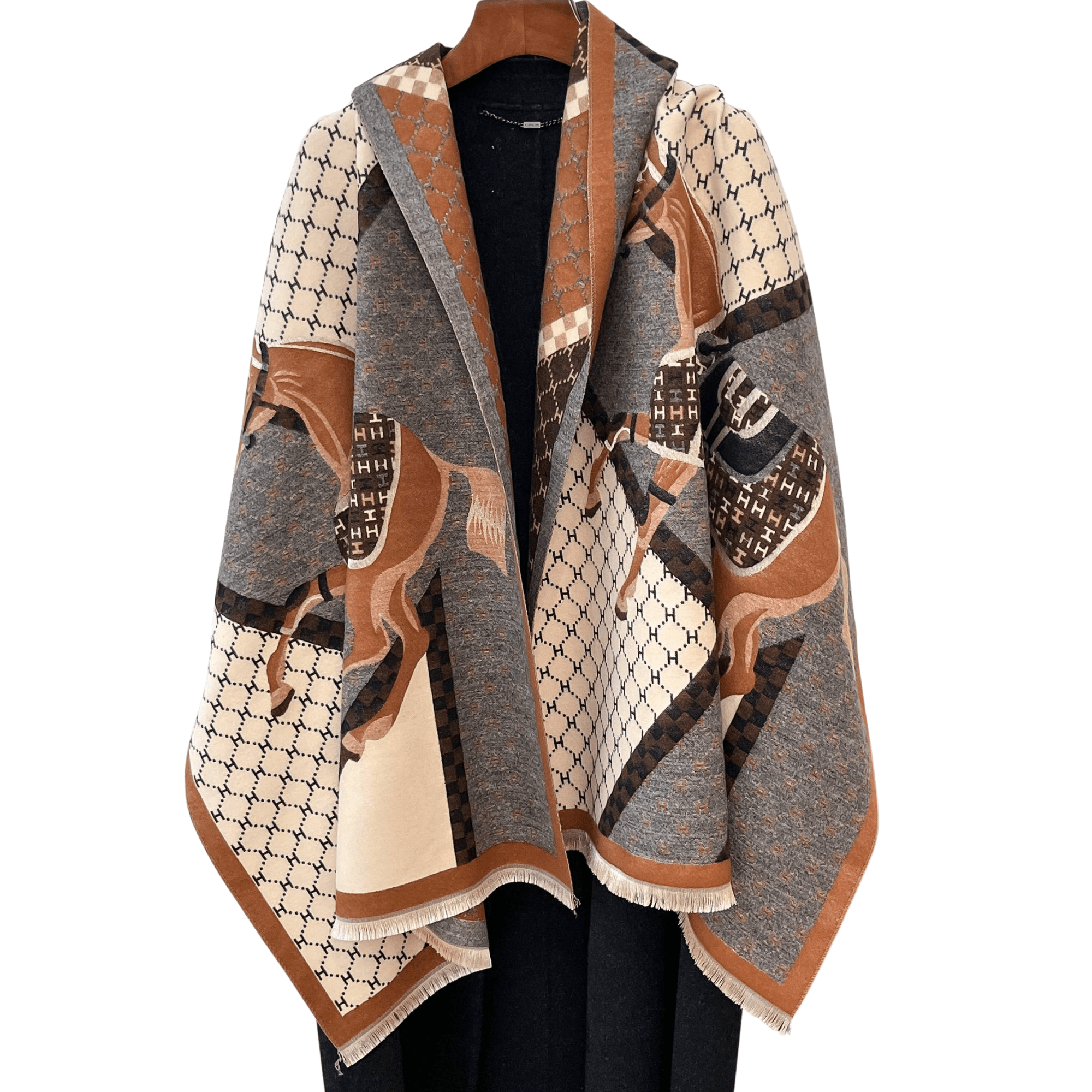 Equestrian Cashmere Scarf/ Shawl - Black & Grey