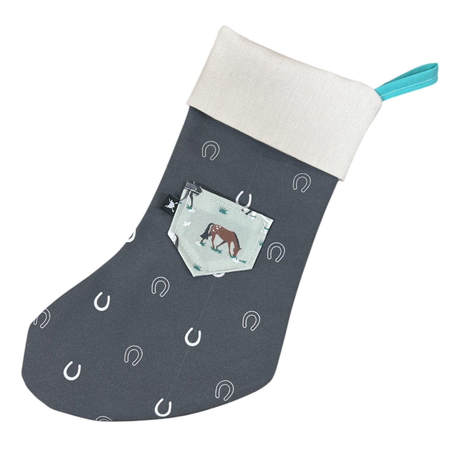 These small but mighty 12" stockings are handmade just for you and designed with equestrian use in mind. Featuring a durable recycled canvas exterior and a 100% cotton lining, they are built to last on stall doors, but are also perfect as unique holiday gift bags.