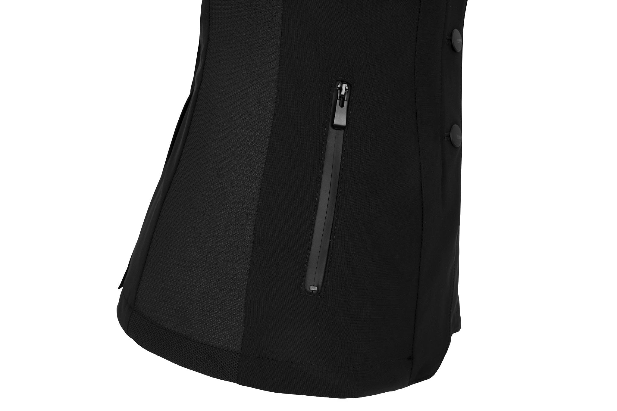 Experience ultimate comfort and performance in this show coat crafted from super lightweight Airmesh fabric. Highly breathable and opaque with a 1/2 mesh lining. Features a sporty, slightly angled hem, smooth fabric collar and lapel, and narrow faux piped pockets. Unique stripe print detailing on the pockets and under slits adds a touch of style. Finished with matte shimmer flat poppers, a sleeve logo, a sleeve stud, and a circle stud at the back of the collar.