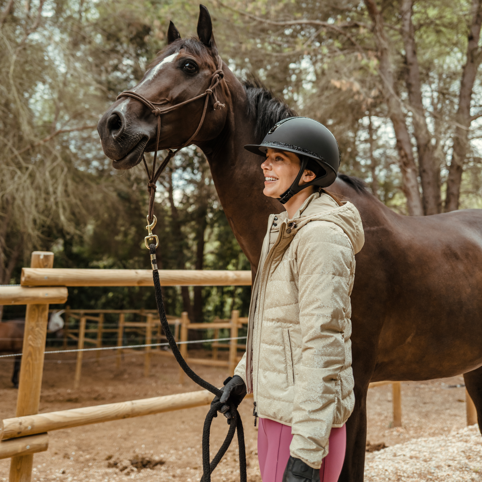 The Samshield Davos is a contemporary women's puffer jacket that seamlessly blends fashion-forward elegance with practical equestrian functionality. This tailored piece features ultrasonic stitching and a removable hood, providing a sleek silhouette that transitions effortlessly from training to competition.