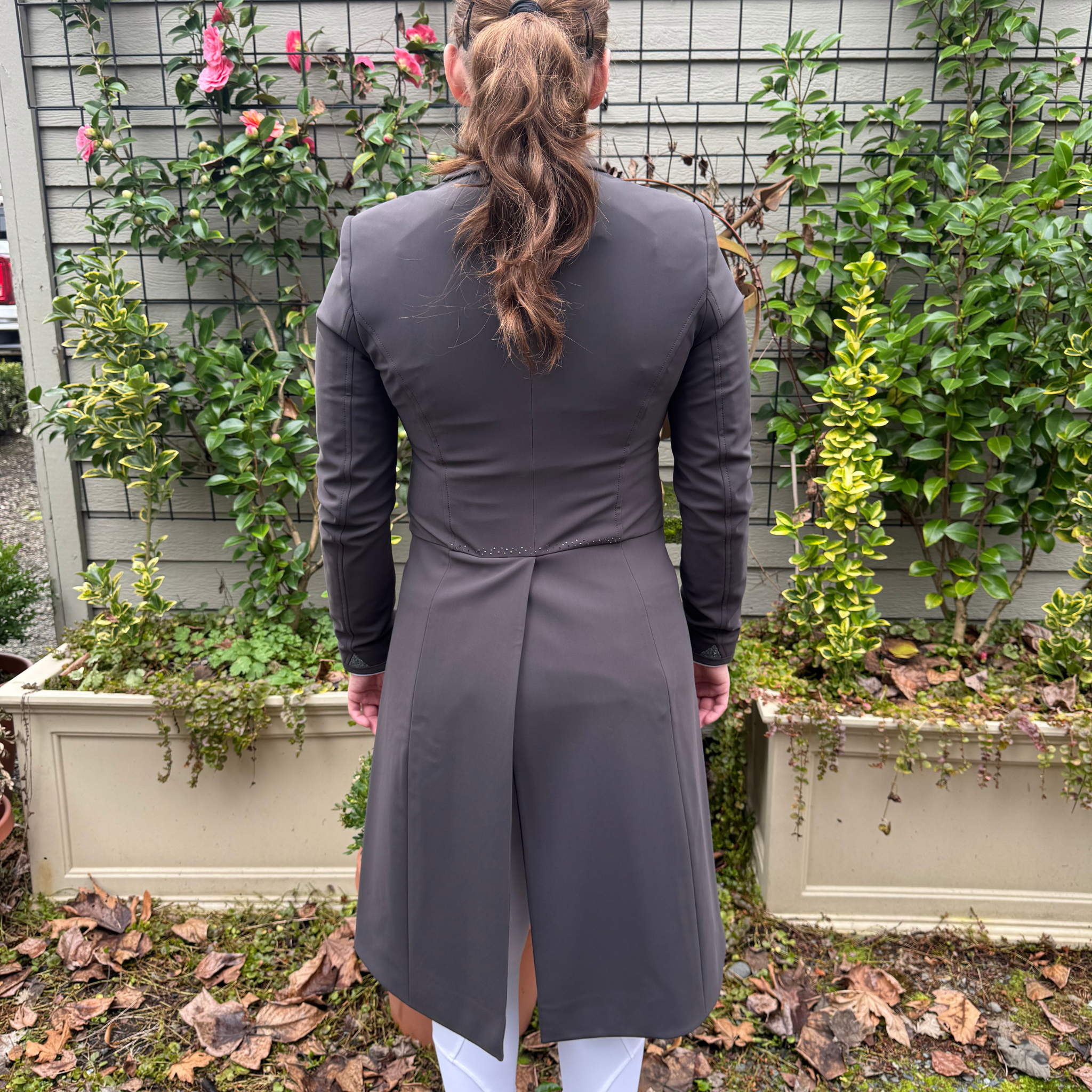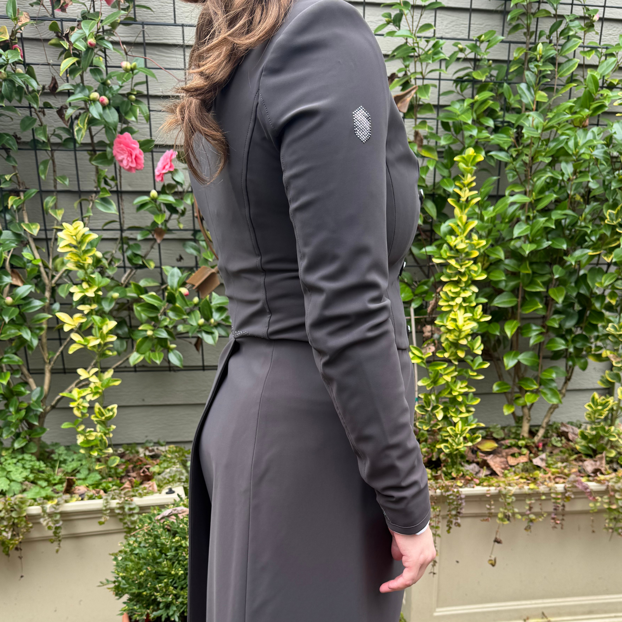 The Samshield Frac Crystal Fabric is a high-performance women's dressage tailcoat that balances a classic silhouette with luxurious modern details. It is crafted from an innovative technical fabric that is exceptionally lightweight and unlined, featuring an internal mesh construction to ensure maximum breathability and freedom of movement in the show ring.