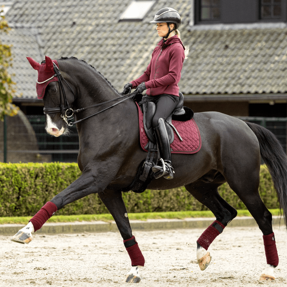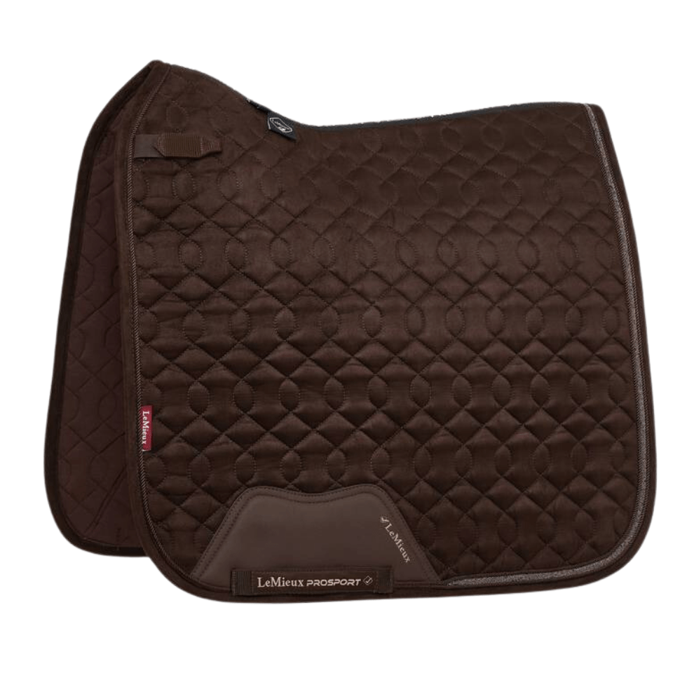 Expertly crafted with a soft suede top and a sleek quilted pattern, the LeMieux Crystal Suede Close Contact Saddle Pad brings a professional touch to your saddle. The luxurious bamboo lining regulates temperature by wicking sweat and moisture, keeping your horse comfortable in any weather. Designed for a secure fit under dressage saddles, with stunning sparkle and braided detail trims for added style.