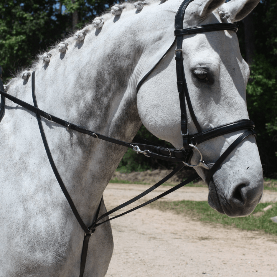 The KL Select Red Barn German Martingale features specialized web reins and a martingale yoke. The martingale forks attach to the bit and snap to any of the four D rings on the reins, providing versatility in training. The neck and girth pieces are fully adjustable to fit a variety of horses and training needs. Available in Black or Brown with buckle end rein closures, this martingale is finished with durable stainless steel hardware. One Size fits most.
