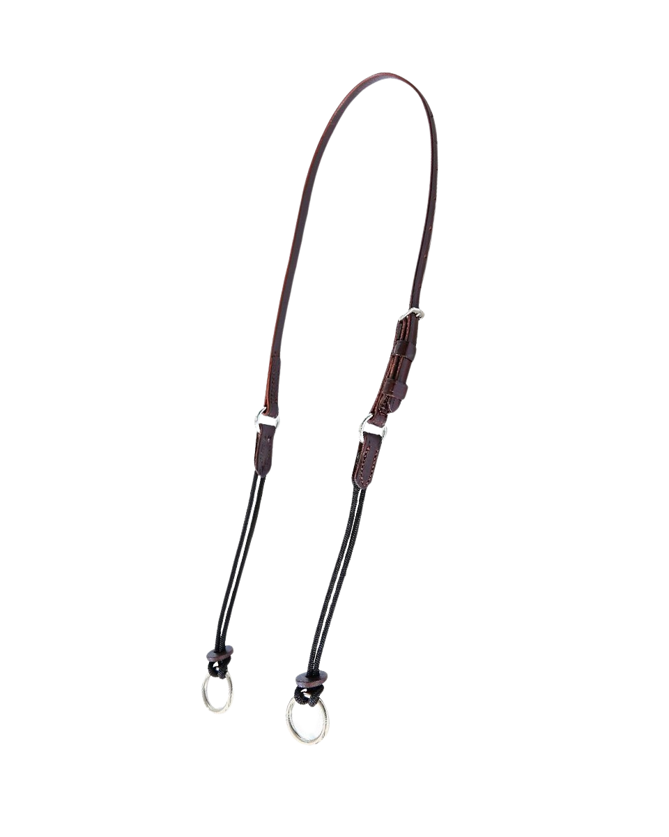 - Dual Rein Versatility: The high-strength nylon rope slips through the bit rings and attaches to either your primary snaffle rein or a dedicated second rein for adjustable leverage.