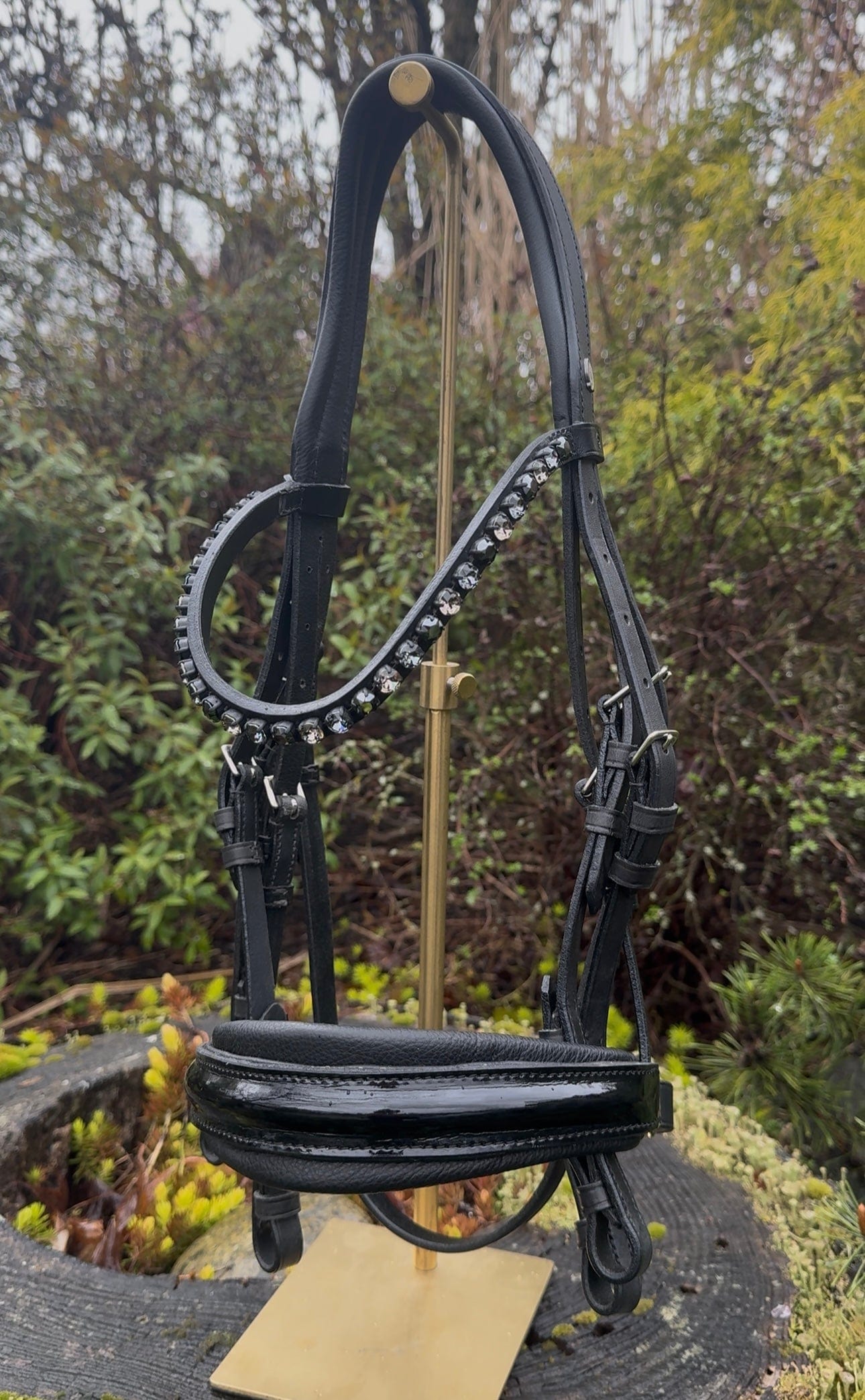 Otto Schumacher Elegant Double Bridle Black with Black Patent Sport Pony Size