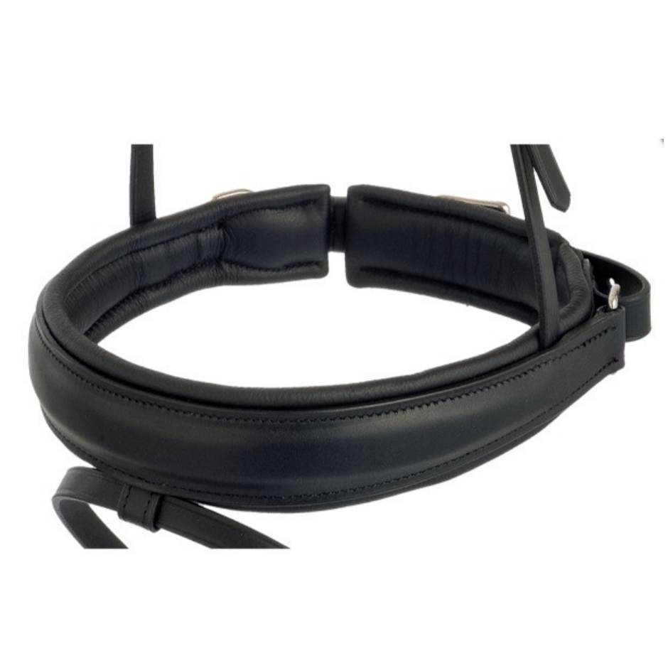 XL noseband for bridle from Otto Schumacher with crank fastening. Softly padded 5 cm flash noseband for use on a bridle. Otto Schumacher are renowned for their exquisite leather goods, their nosebands being no exception. Additional options are available with personalized designs. Such additional options include brass buckles and a patent noseband.