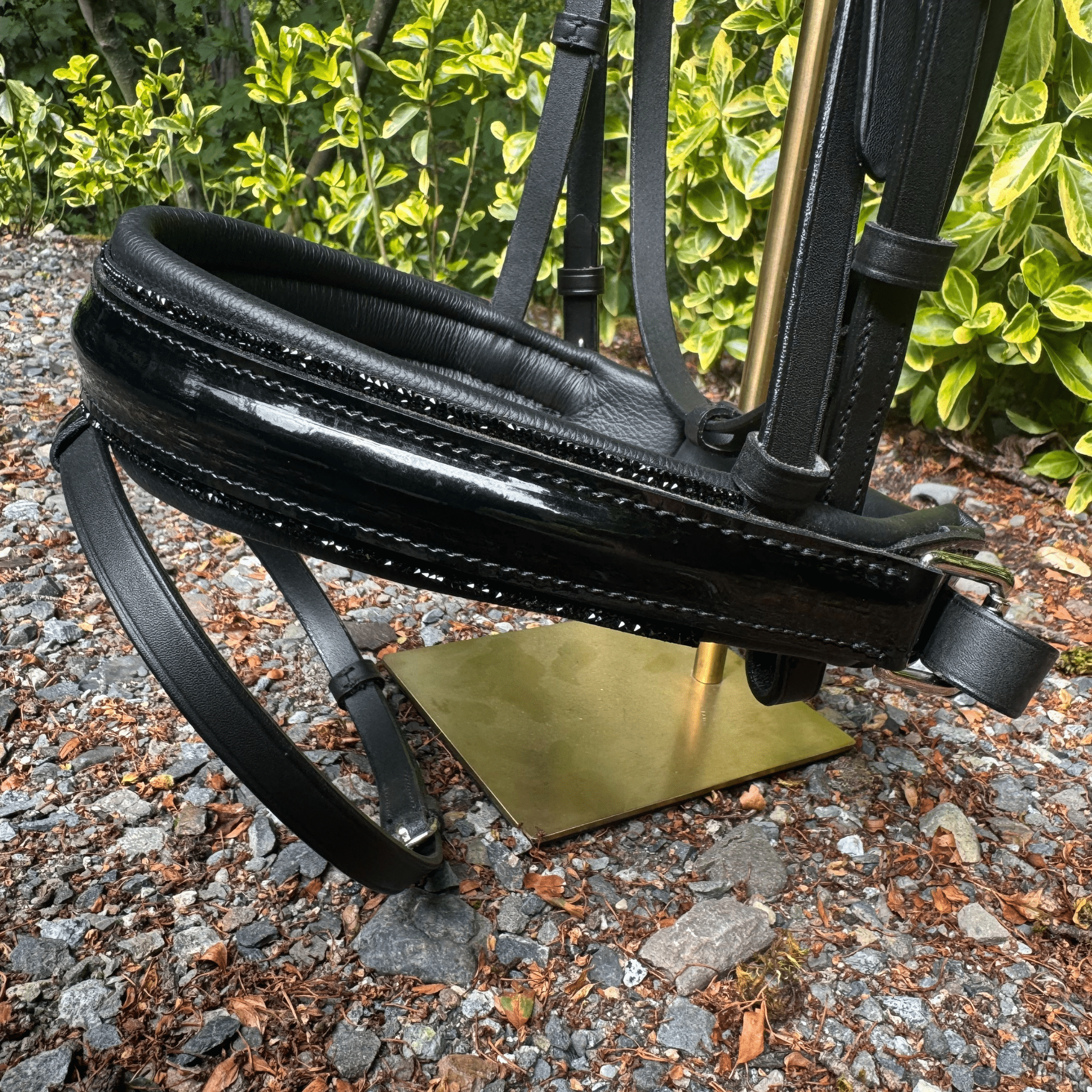 Otto Schumacher Tokyo Snaffle with Black Patent Fineline and XL Rivoli Browband