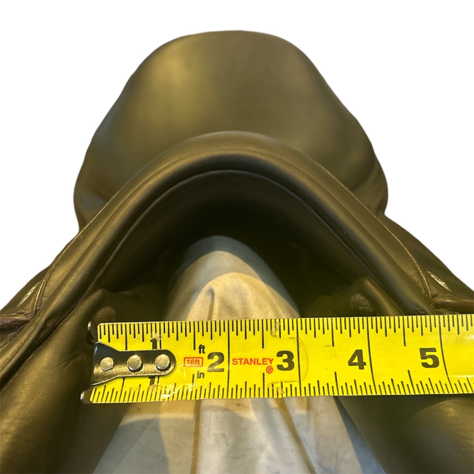 Gullet: The gullet measures 3.25" at the widest point from the pommel to the cantle and 2.25" at the narrowest