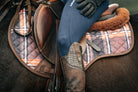The 16C Field Plaid, engineered from antique woven textiles and refined through eco-conscious digital printing, is paired with strong Hickory leatherette binding for a tailored finish and secure hold. Cut specifically for forward flap jump & eventing saddles, this pad offers our standard contoured spine with sport mesh lining.