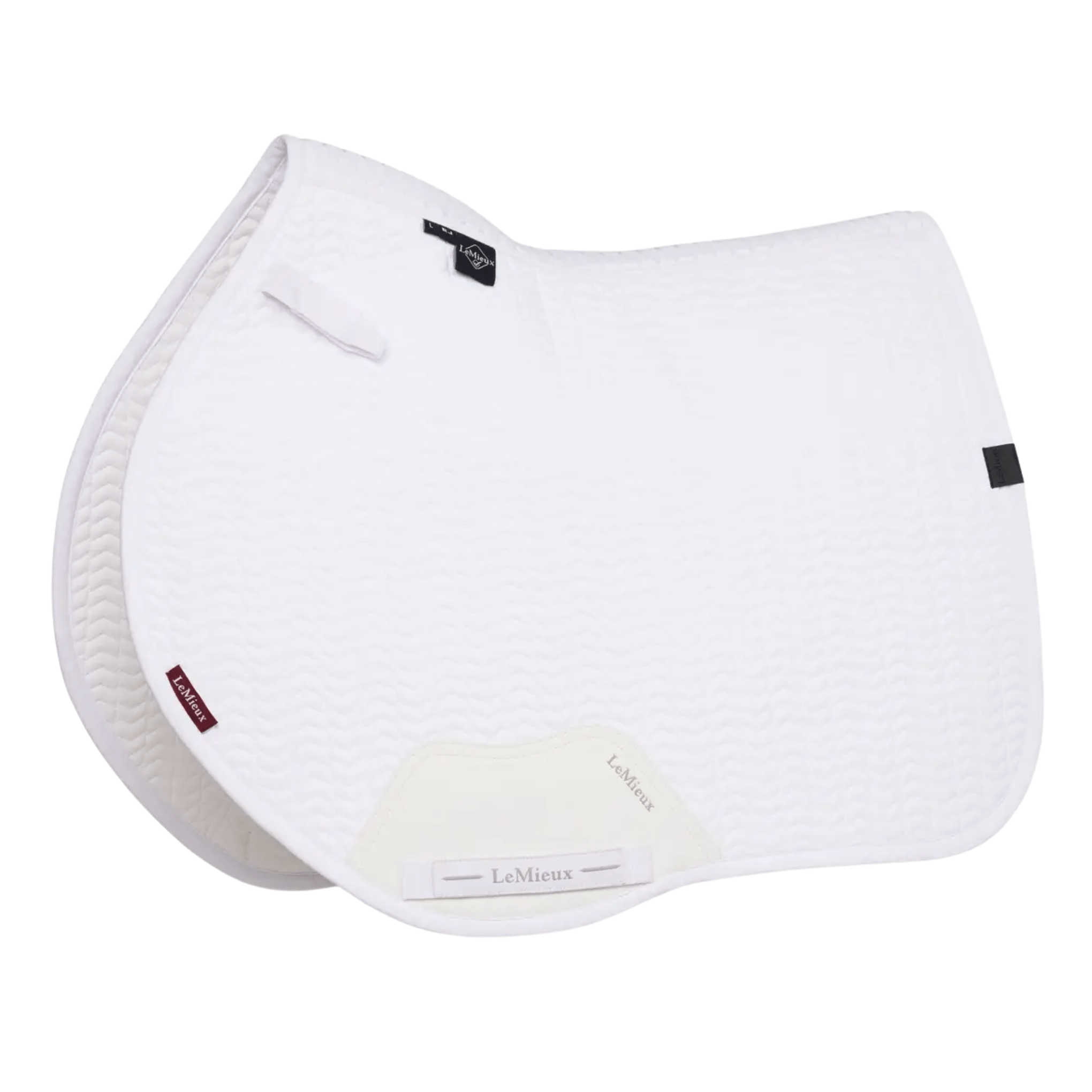 Experience unparalleled performance and style with the LeMieux Essence Collection Saddle Pad. Designed for elite riders, its soft shell fabric and contour-quilted upper hug your horse's curves for a sleek, wrinkle-free fit. Featuring a breathable, self-cool lining with moisture-activated cooling fibers and a full 3D carbon mesh spine, this pad actively manages heat and wicks sweat. The high wither shape enhances saddle fit, while friction-free binding and elasticated saddle straps ensure comfort and stability. Finished with a matte faux leather girth protection area, hidden girth loops, and a distinctive LeMieux branded tab, it combines ultimate function with sophisticated style.