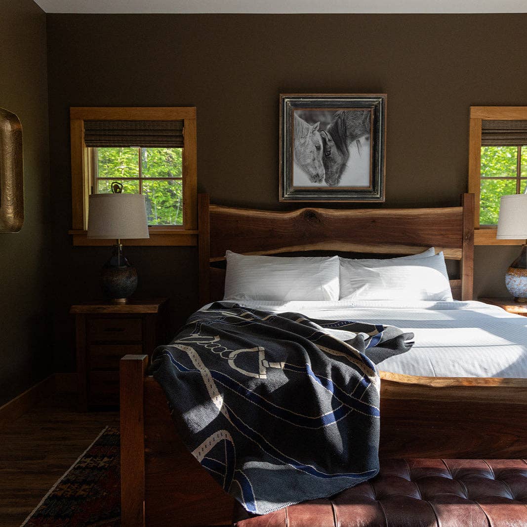 Equestrian Tack Cotton Knit Patterned Throw Blanket