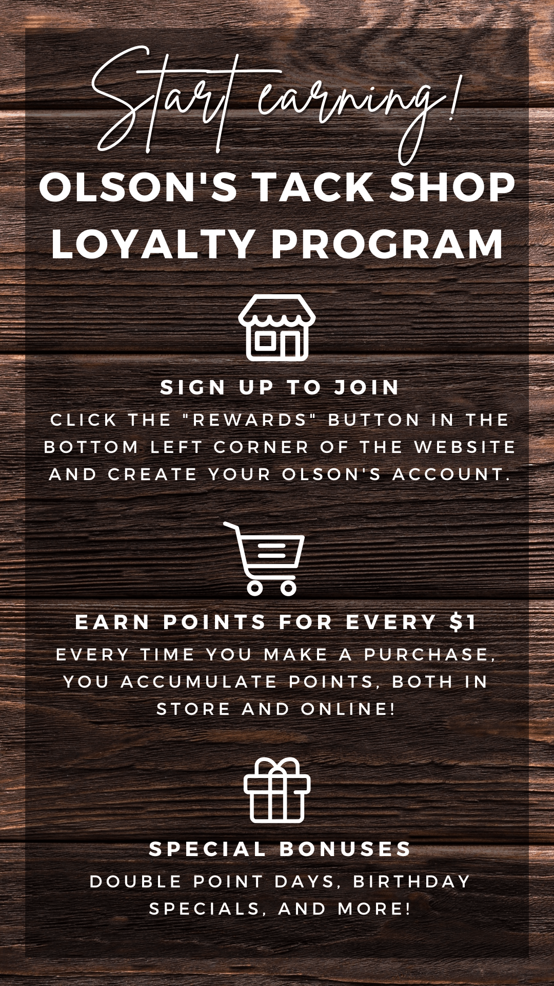 Points are earned for every dollar spent, however rewards cannot be redeemed on gift cards, sale items, or any saddles.