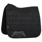 Expertly crafted with a soft suede top and a sleek quilted pattern, the LeMieux Crystal Suede Close Contact Saddle Pad brings a professional touch to your saddle. The luxurious bamboo lining regulates temperature by wicking sweat and moisture, keeping your horse comfortable in any weather. Designed for a secure fit under dressage saddles, with stunning sparkle and braided detail trims for added style.