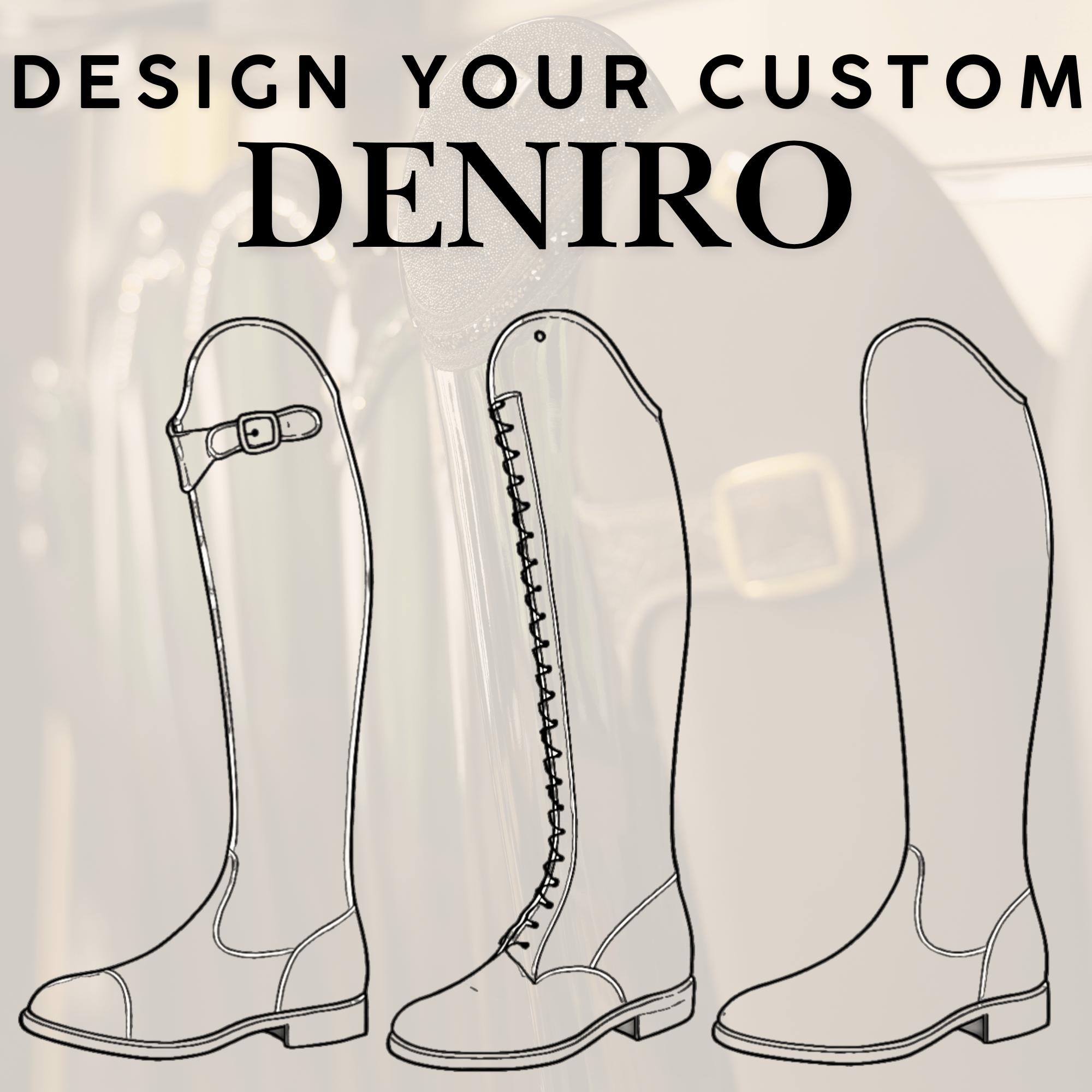 Welcome to the Olson's Tack Shop Custom DeNiro Boot Builder! Here, you can begin the exciting journey of designing your perfect pair of DeNiro riding boots, tailored to your unique style and needs. With DeNiro's unparalleled craftsmanship and our expert guidance, your ideal boots are just a few clicks away. Please don't hesitate to call or text if you need additional assistance (425)454-9453. Start building now 👇