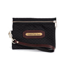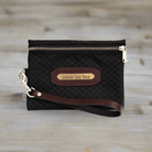The Champions Collection was created with horse show and year-end awards in mind and each bag includes a leather accent to attach a personalized plate to. Classy and stylish for everyday use and durable enough for the barn! Each bag is created with durable black Cordura nylon and finished with Wickett & Craig leather accents. The wristlet is lined, has a length of 8” and 6” in height, and two premium metal zippers to access the pockets on each side of the bag. The wristlet also features a removable leather hand strap.