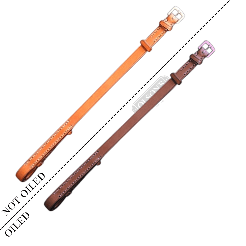 Edgewood bridles arrive in a beautiful high quality chestnut color. Once oiled it warms up and softens into a beautiful warm dark brown color.