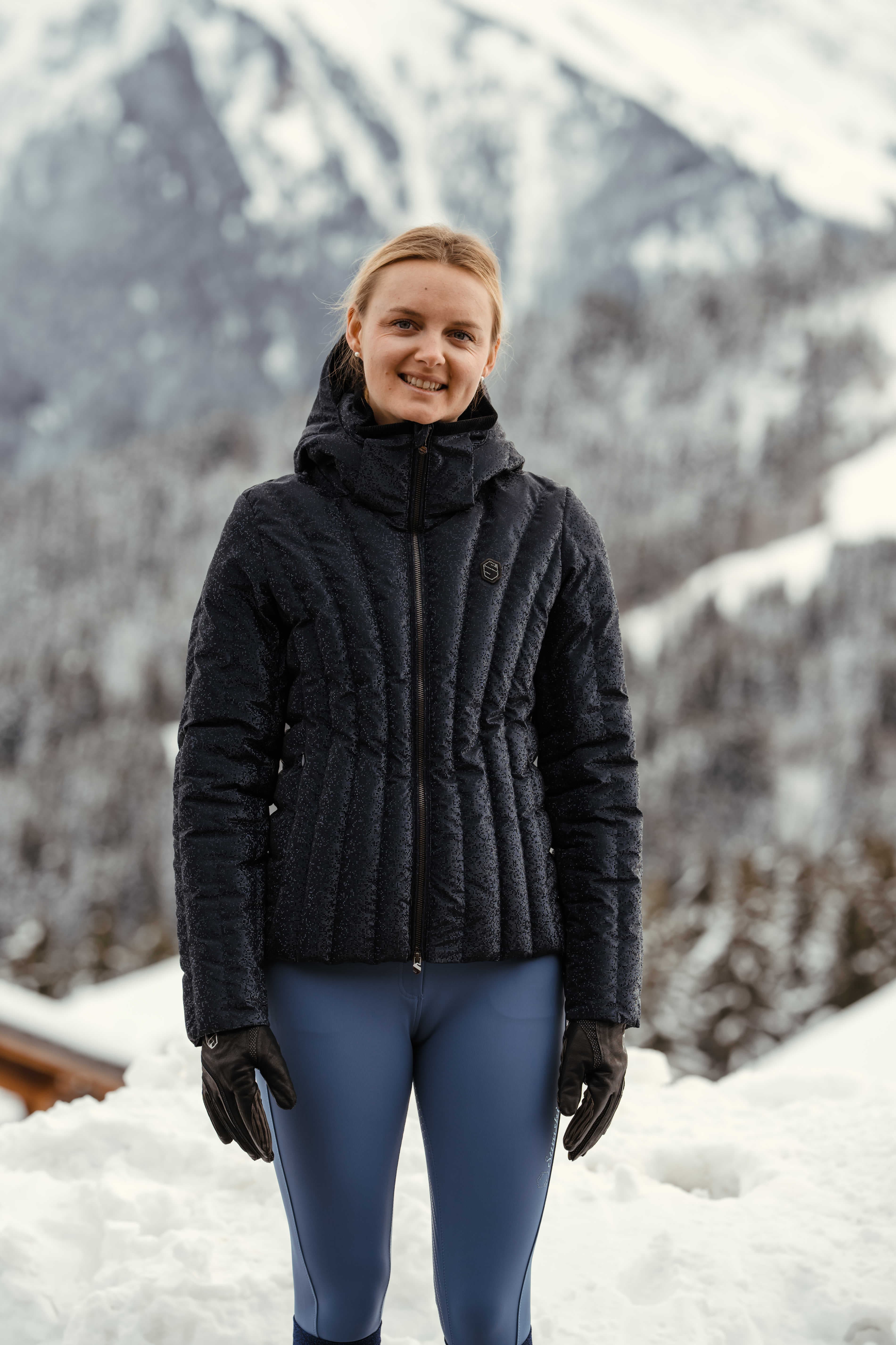 - Details: Invisible zip, reverse zipper, and a ribbed collar.