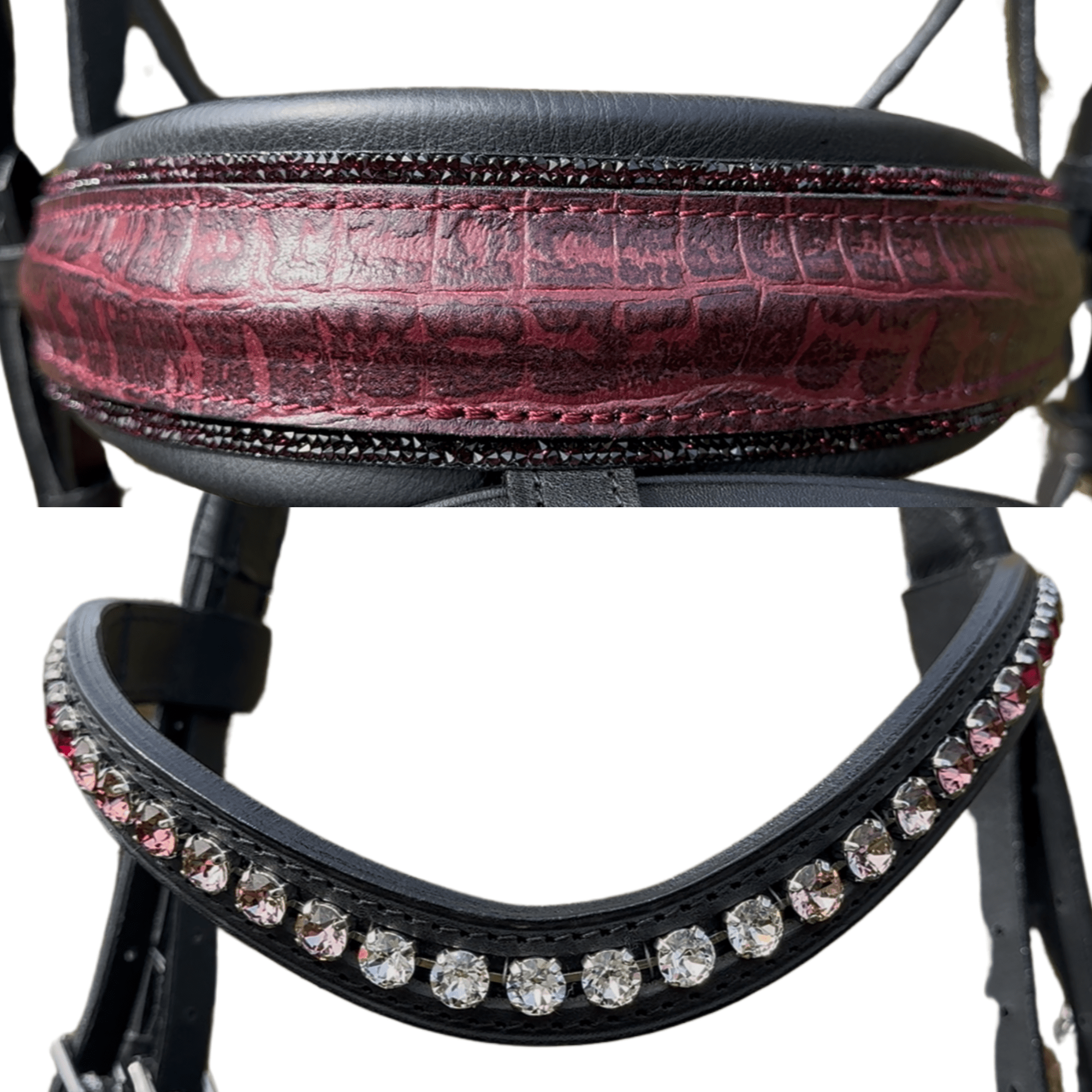 - 5cm XS Comfort Anatomical Noseband with Patent Croco Burgundy and Fuchsia Fineline
