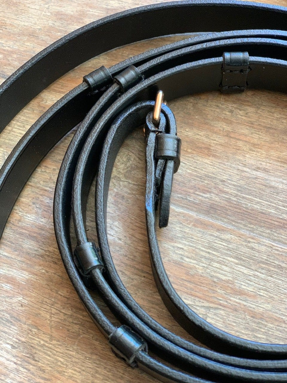 - Features rose gold hardware (all buckles, hook studs, etc).